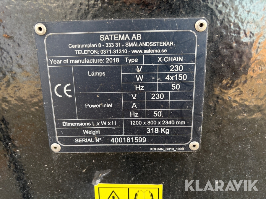 Boka frakt? Det finns ingen specifik information om frakt för just det här objektet, men om du skickar oss en förfrågan via vårt fraktformulär, så undersöker vi möjligheten. Paket, EU-pall eller större maskin? Klaravik har fraktavtal med Schenker och i de fall vi kan hjälpa till med frakt gäller det objekt som ryms i paket eller inom en EU-pall (upp till 120*80 cm och 990 kg). Det går att beställa frakt inom Sverige, dock inte till utlandet. Vid frakt på större maskiner rekommenderar vi gärna transportföretag som du kan kontakta.