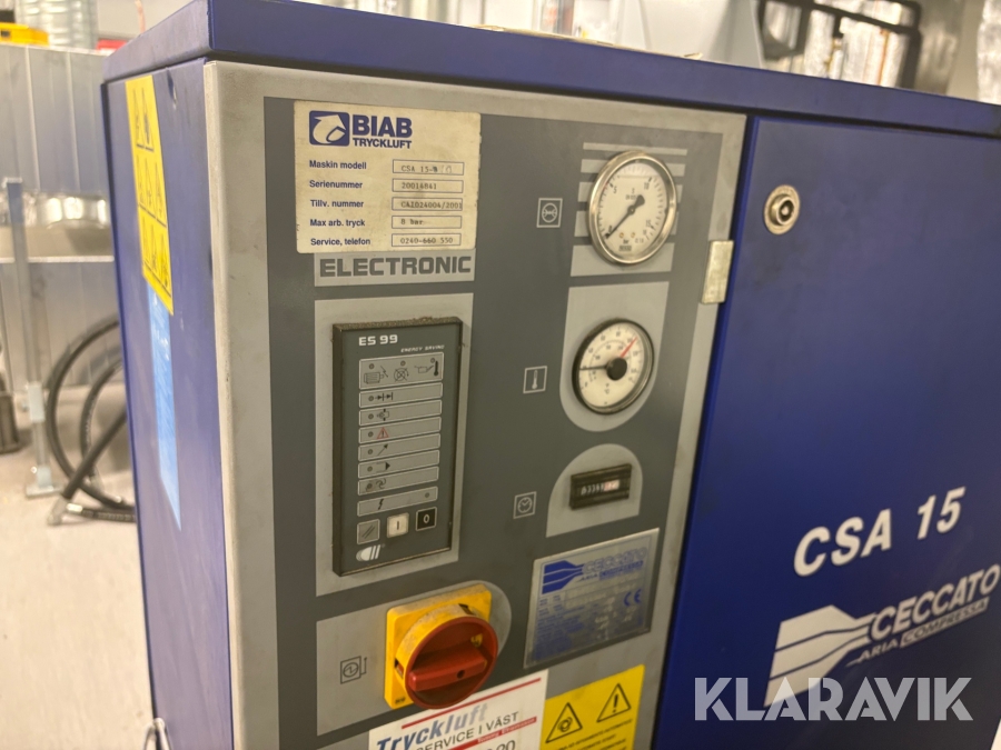 Skruvkompressor Ceccato CSA 15 med kyltork och trycktank