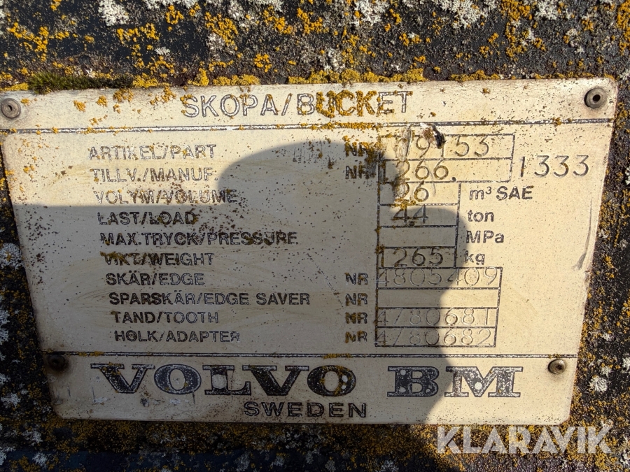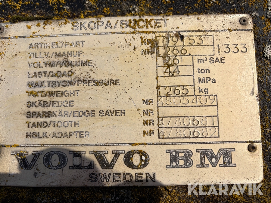 Tandad skopa Volvo BM