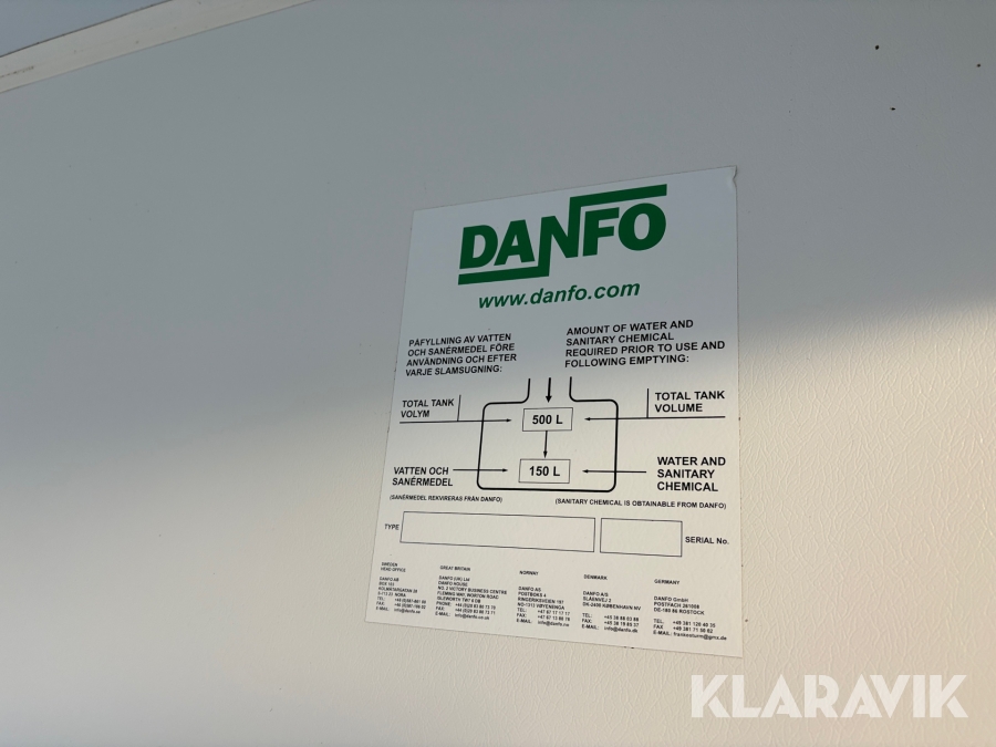 Toalettbod WC Danfo TV-4 80km/h registrerad