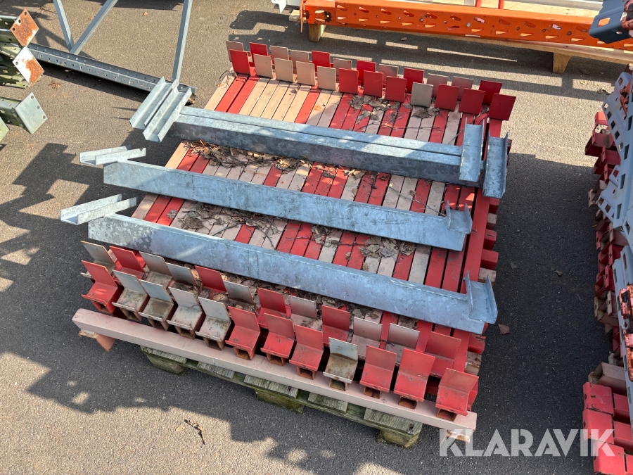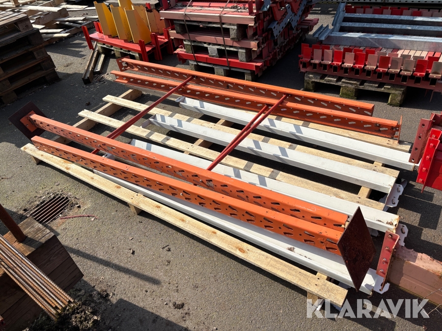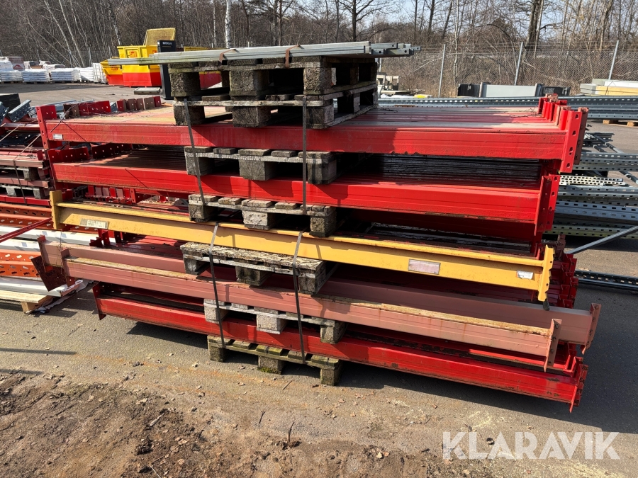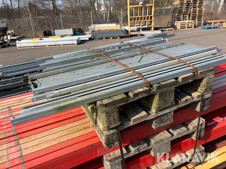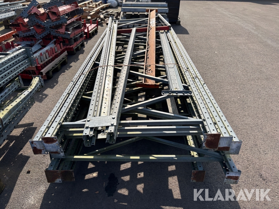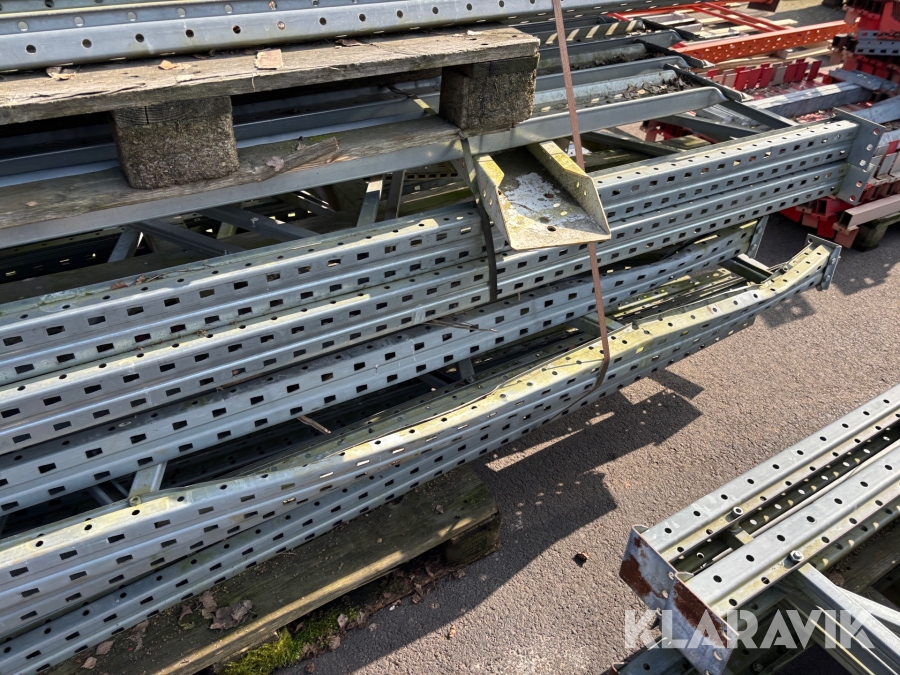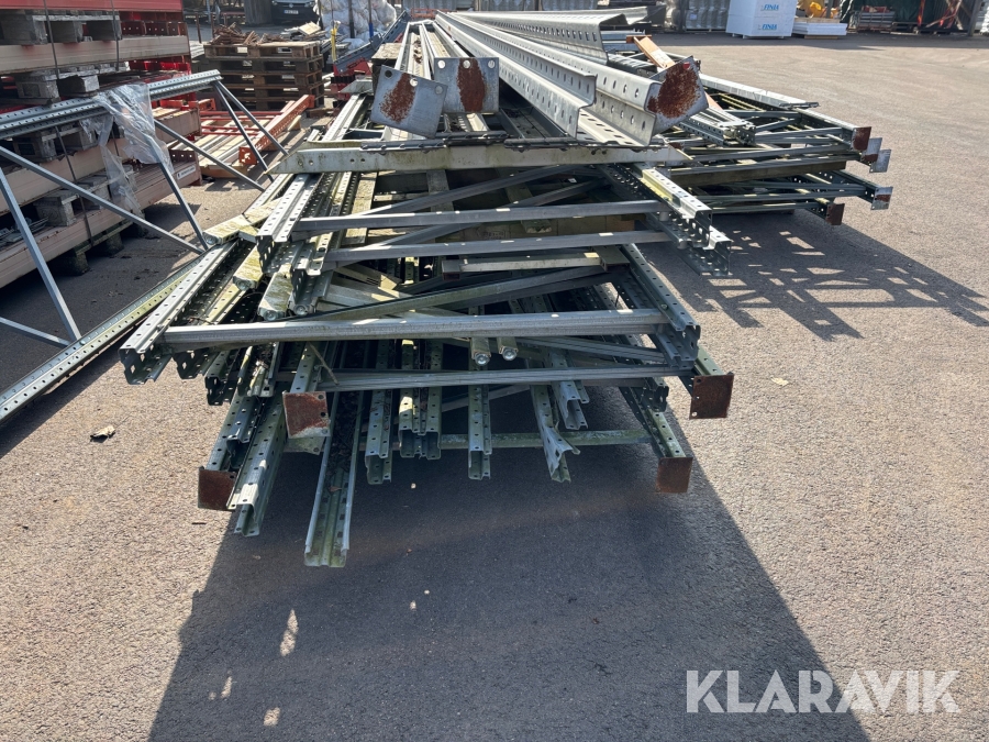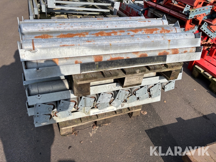 Pallställ med gavlar, balkar och rullar