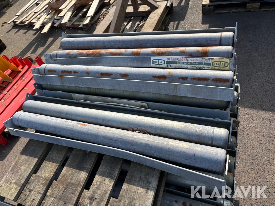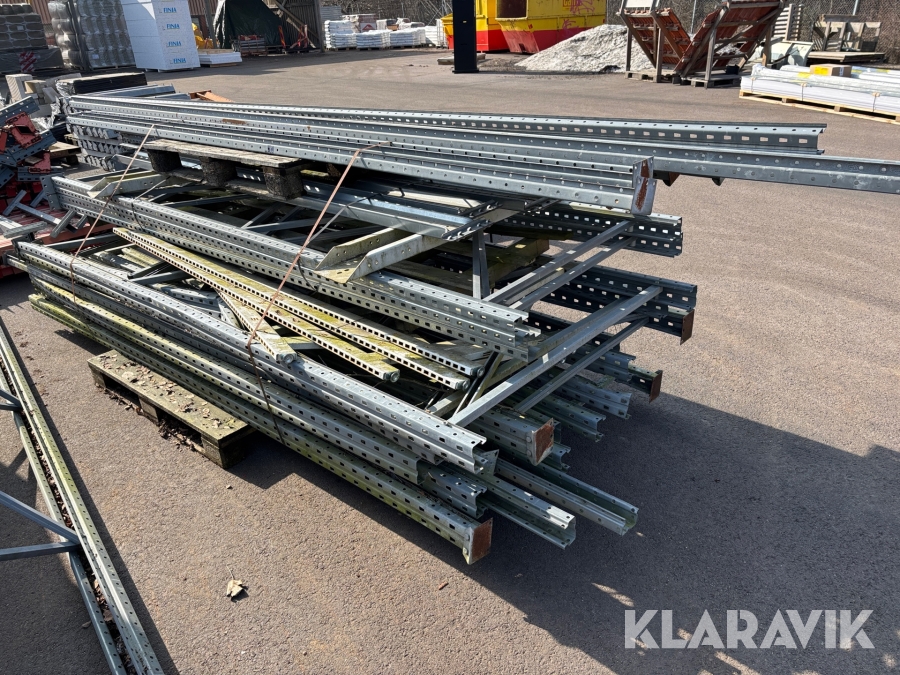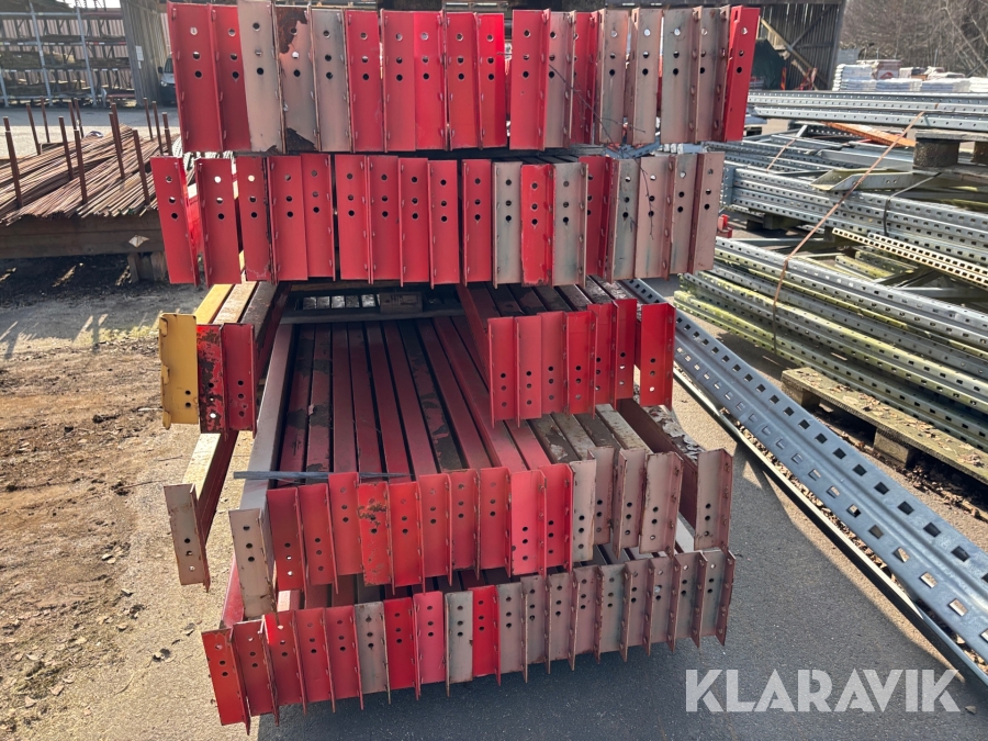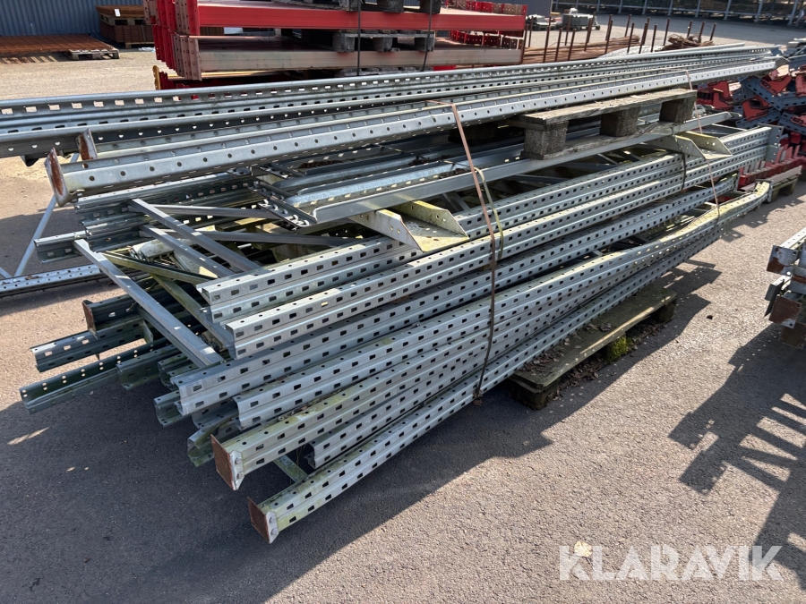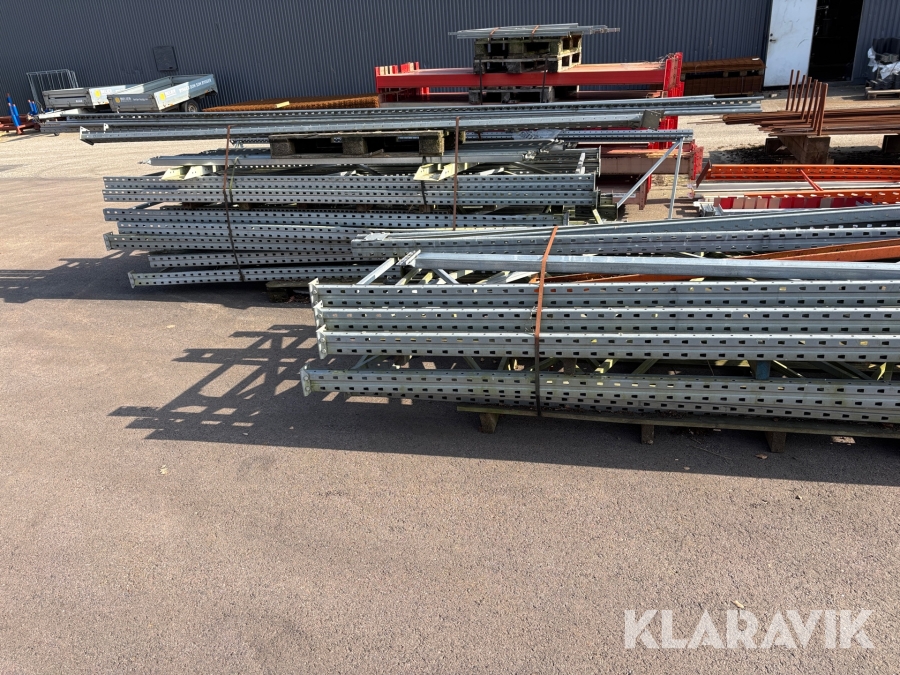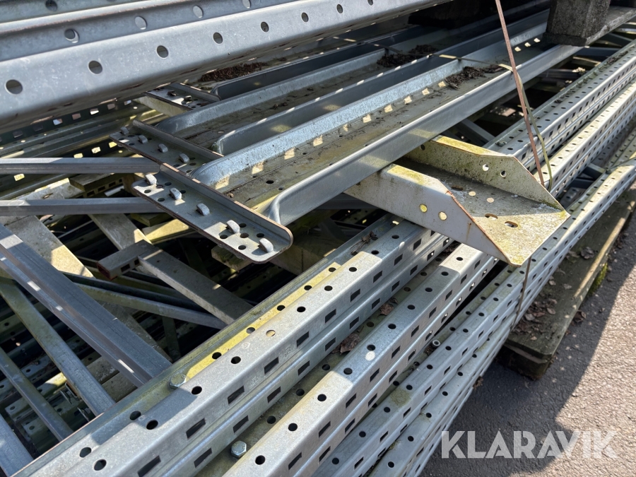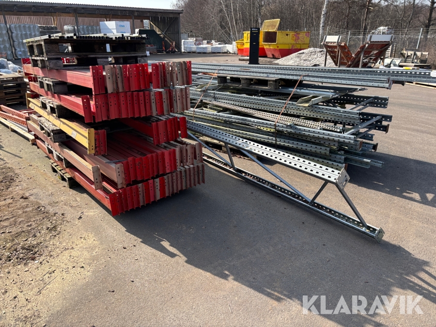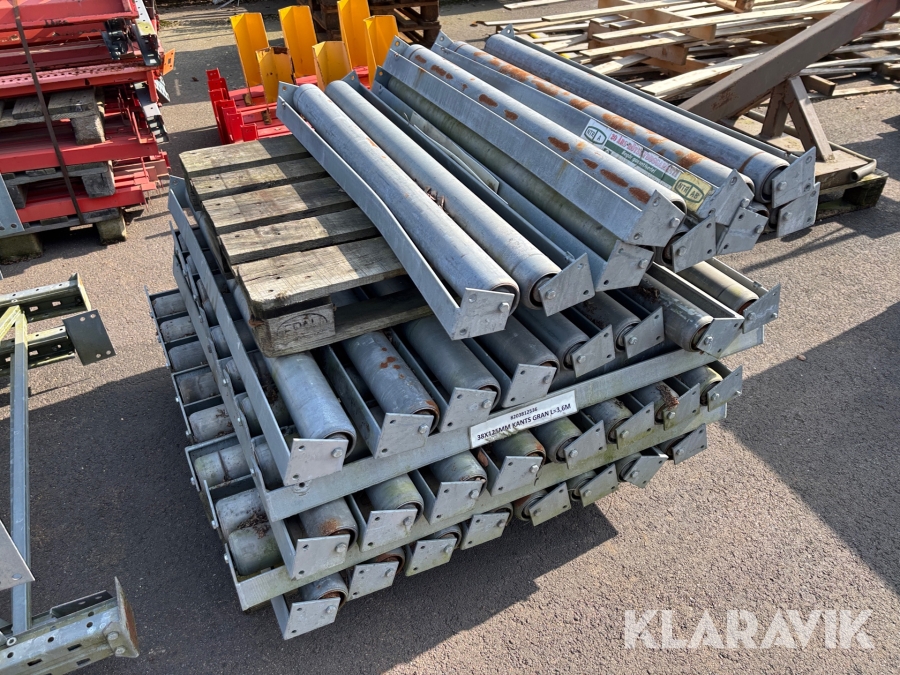 Pallställ med gavlar, balkar och rullar