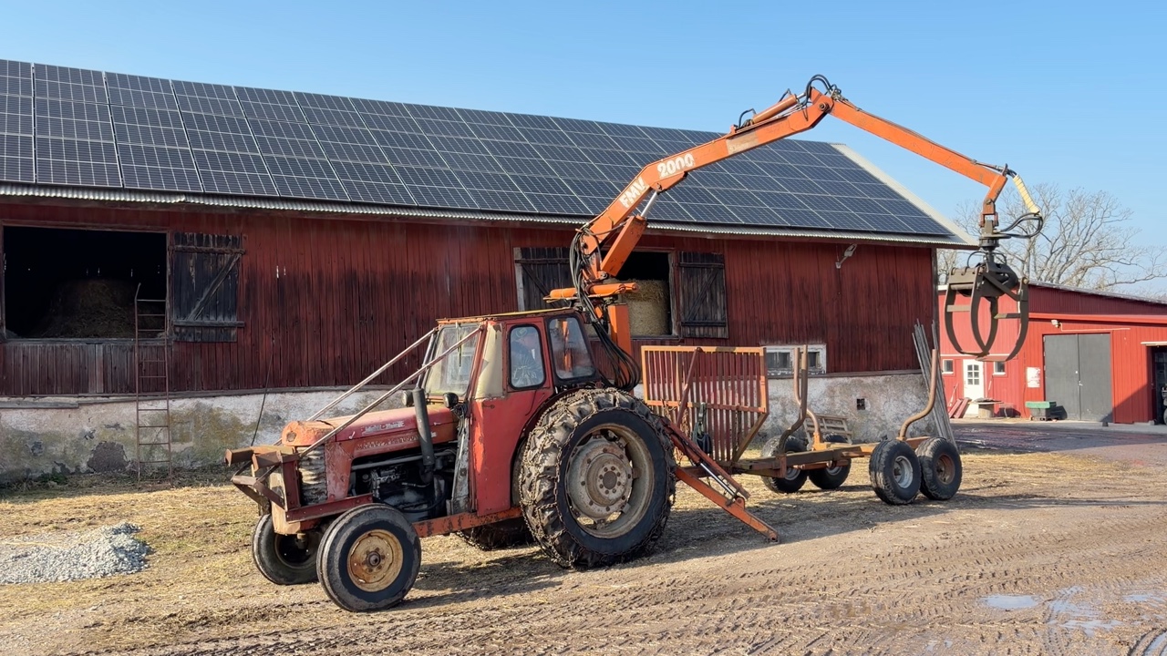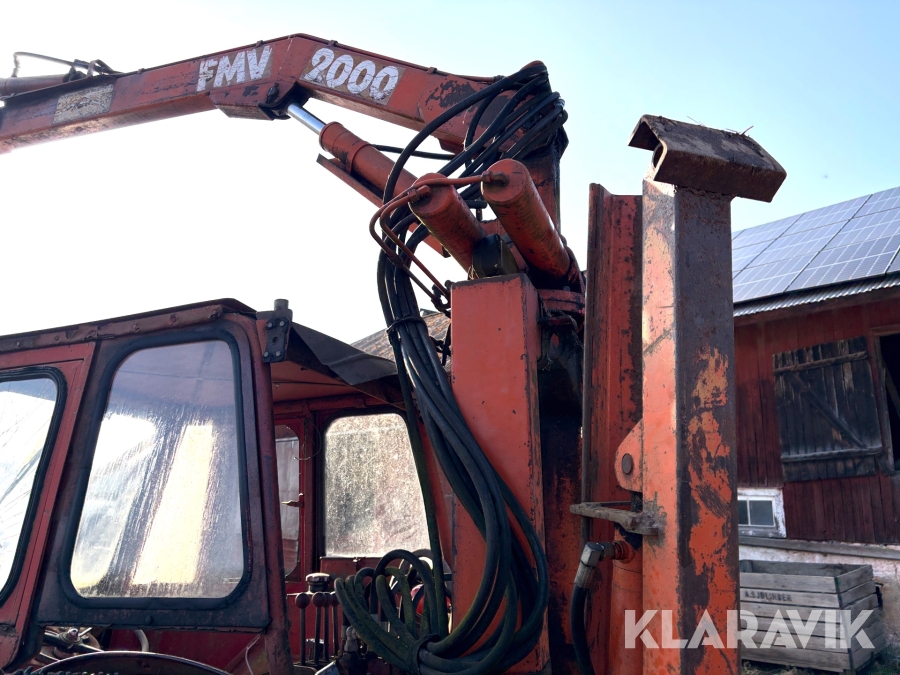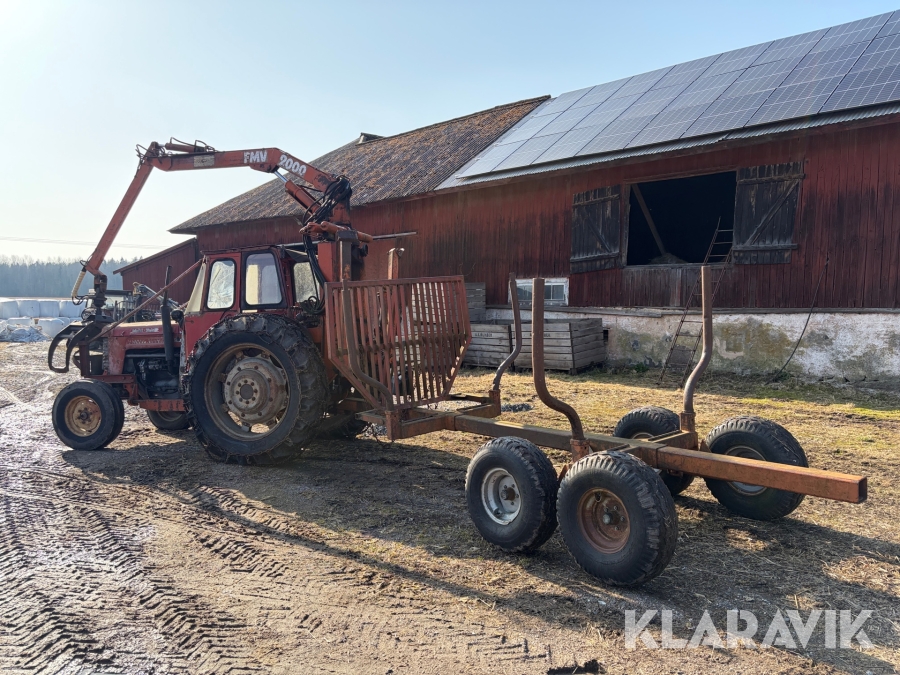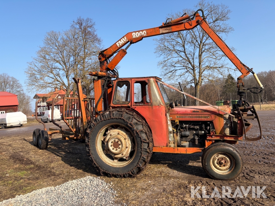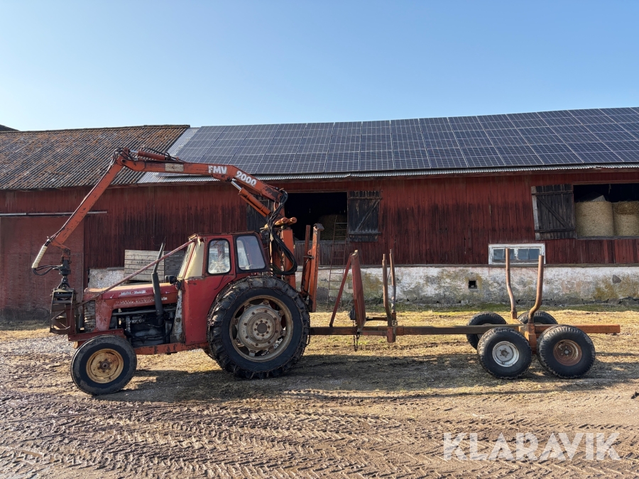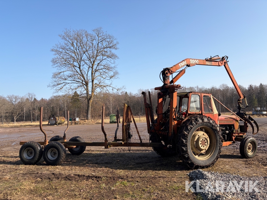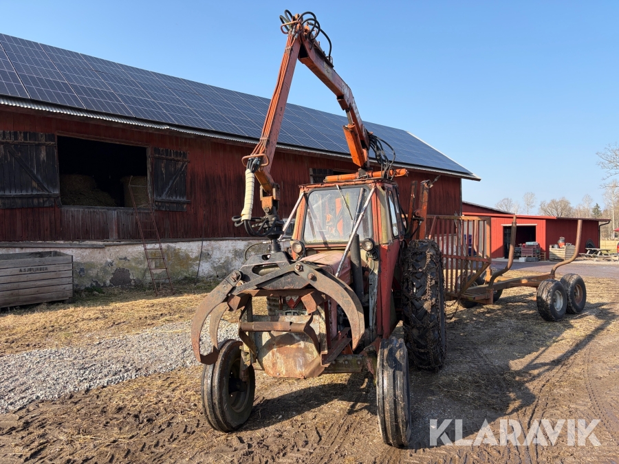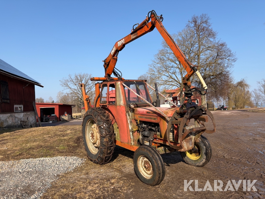 Veterantraktor/Skogstraktor Massey Ferguson 65 med skogskran och huggarvagn