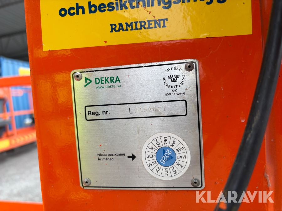 Läs om metodikenPga platsbrist är det viktigt att du som köpare hämtar inom 12 dagar från auktionsavslut. Vid frågor om frakt kontakta trade@ramirent.se.