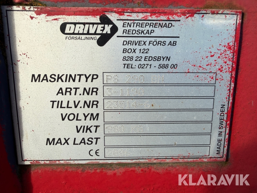 Boka frakt? Det finns ingen specifik information om frakt för just det här objektet, men om du skickar oss en förfrågan via vårt fraktformulär, så undersöker vi möjligheten. Paket, EU-pall eller större maskin? Klaravik har fraktavtal med Schenker och i de fall vi kan hjälpa till med frakt gäller det objekt som ryms i paket eller inom en EU-pall (upp till 120*80 cm och 990 kg). Det går att beställa frakt inom Sverige, dock inte till utlandet. Vid frakt på större maskiner rekommenderar vi gärna transportföretag som du kan kontakta.