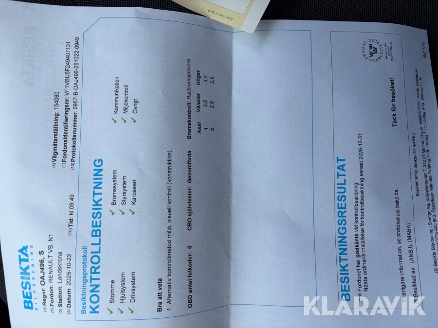 Du som köpare är skyldig att kontrollera objektet vid hämtning. Skiljer sig något avsevärt jämfört med informationen på klaravik.se? Kontakta då Klaravik innan du tar objektet från platsen. Läs fullständiga köpvillkor.