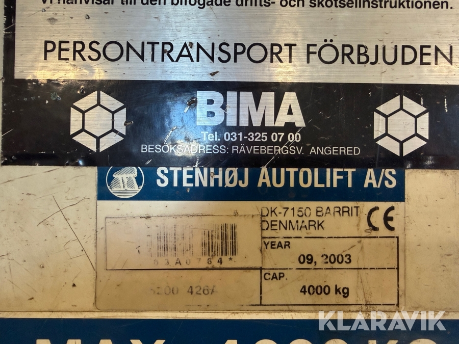Fyrpelarlyft Stenhöj DS4 4000 kg