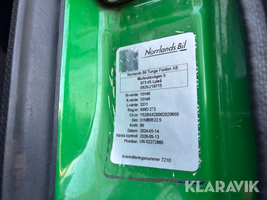 Lastväxlare Scania R480 med maskinflak