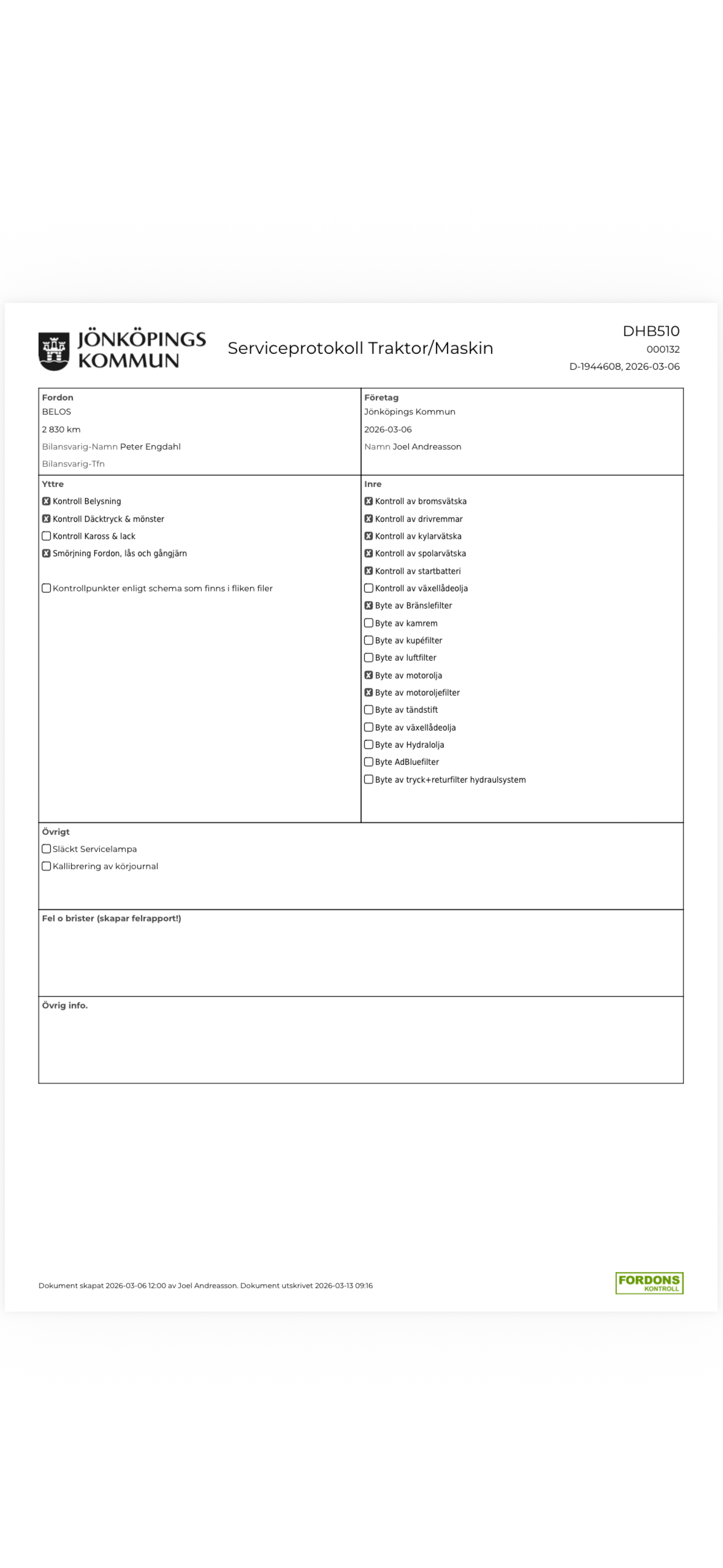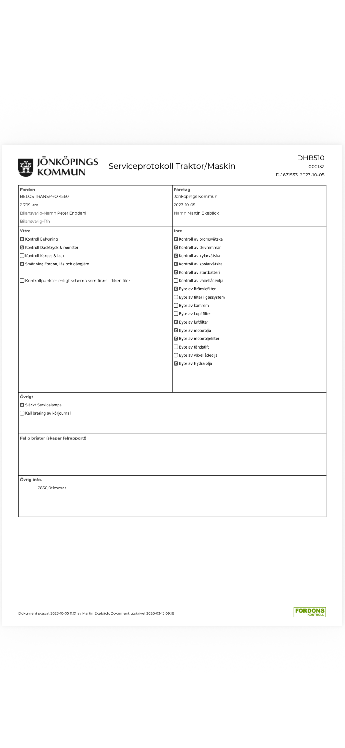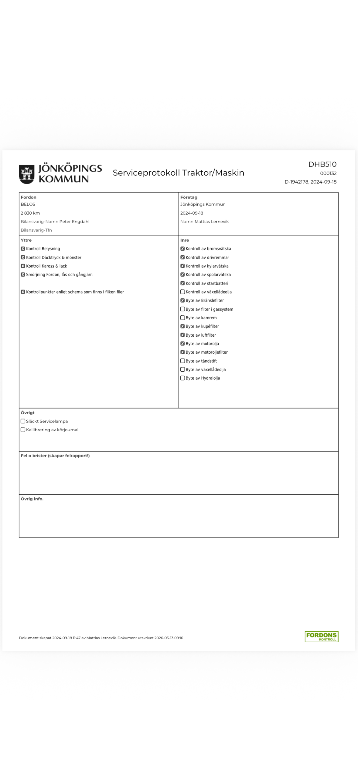 För utförligare information om vad som har utförts vid respektive servicetillfälle, se bifogade serviceprotokoll.