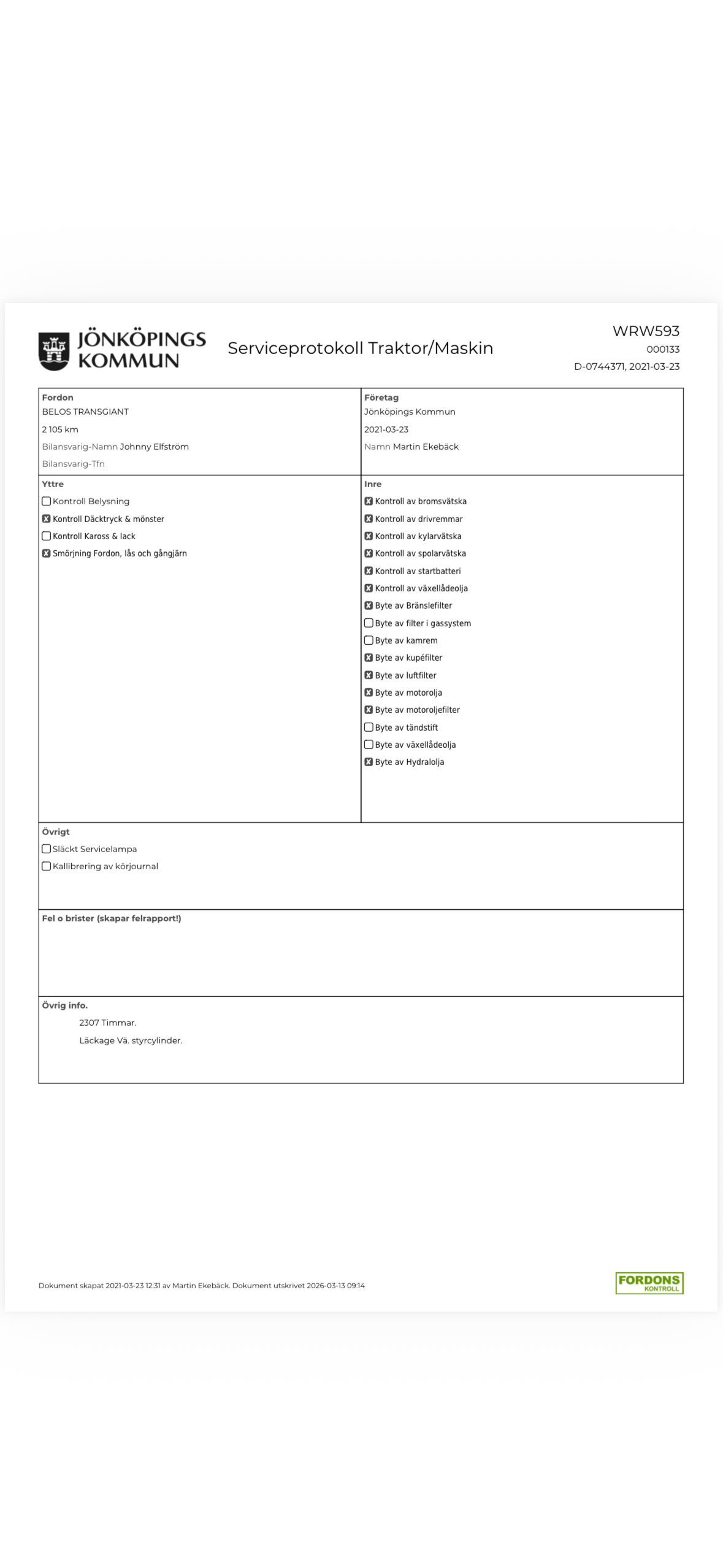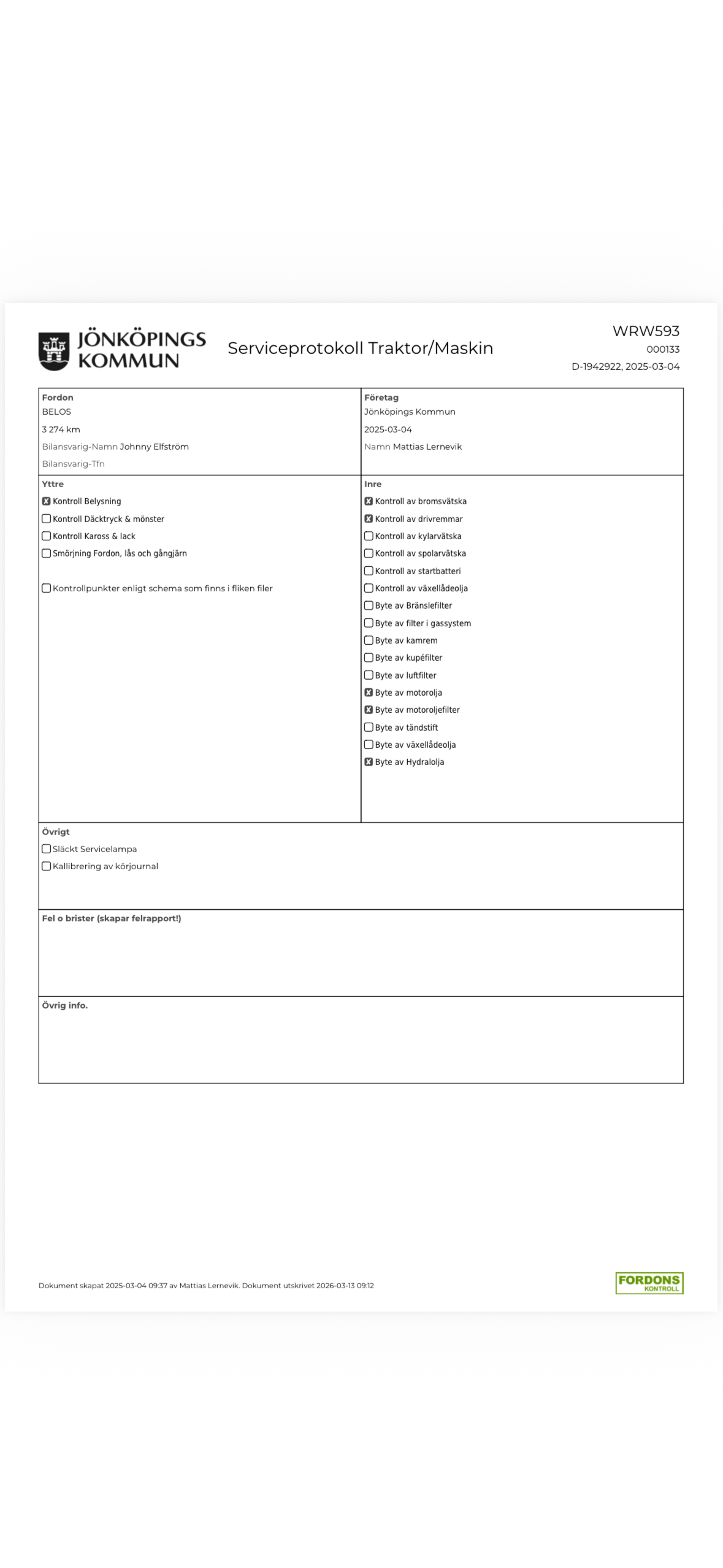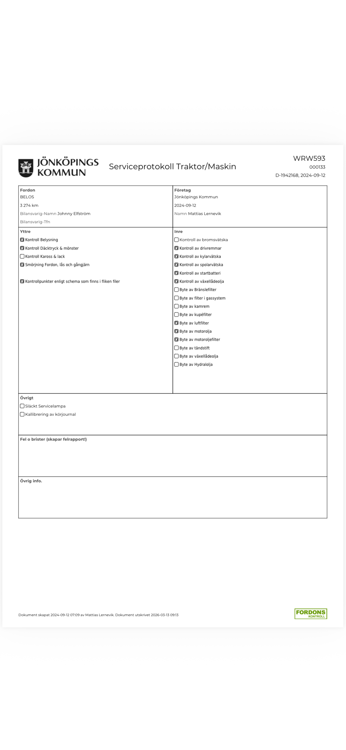 För utförligare information om vad som har utförts vid respektive servicetillfälle, se bifogade serviceprotokoll.