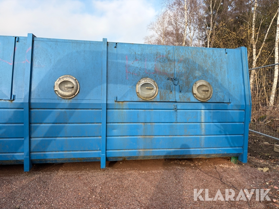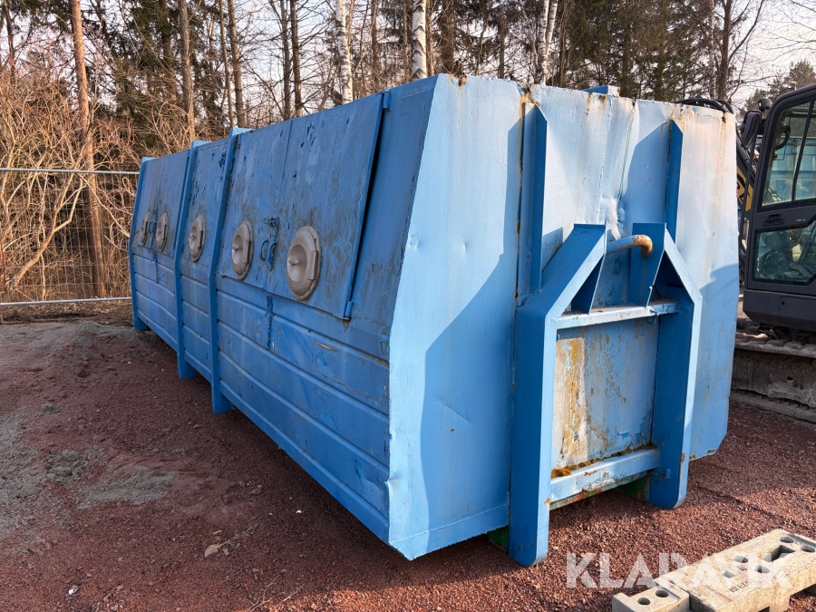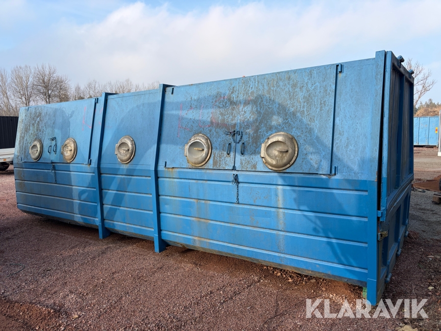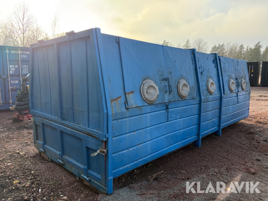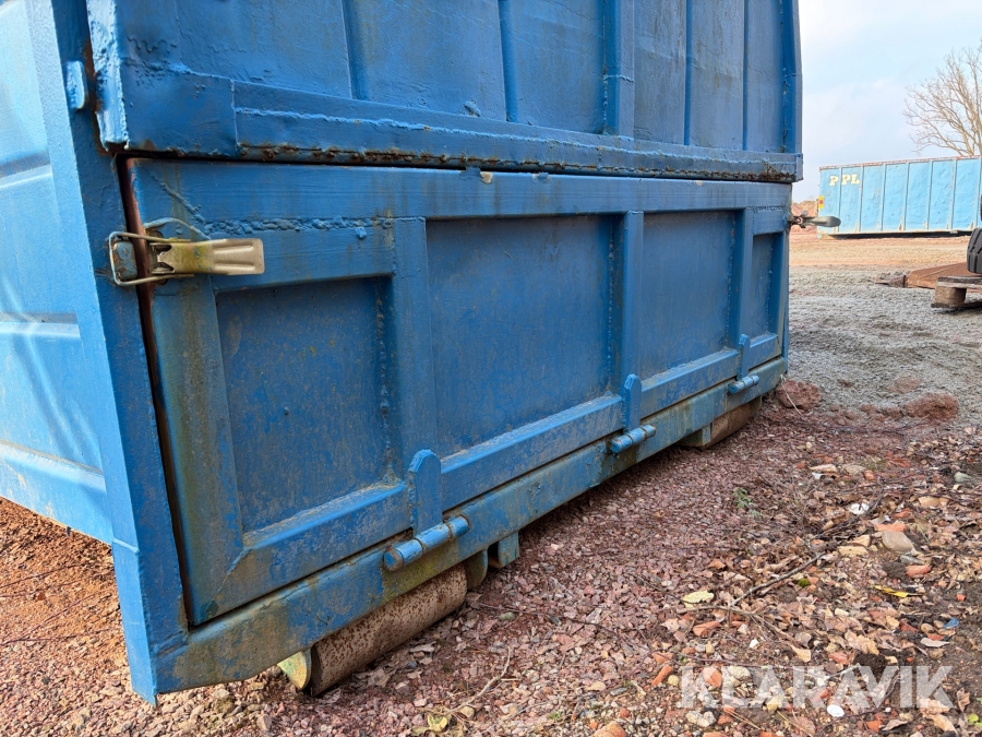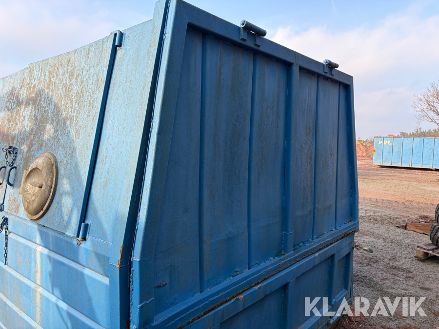 Lastväxlarflak med täckt container och sidoinkast