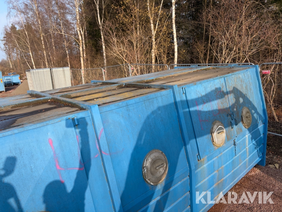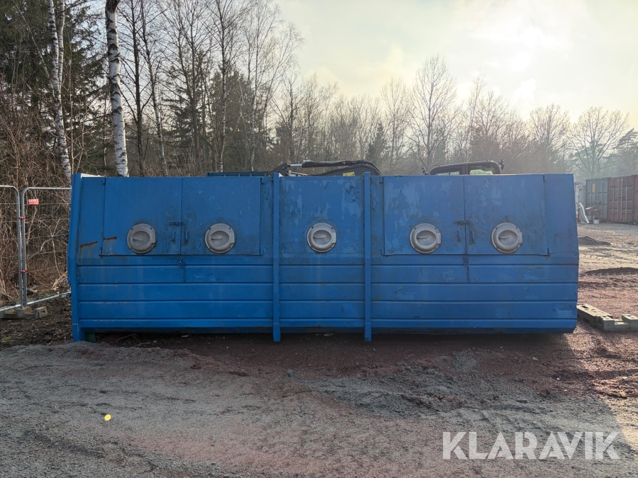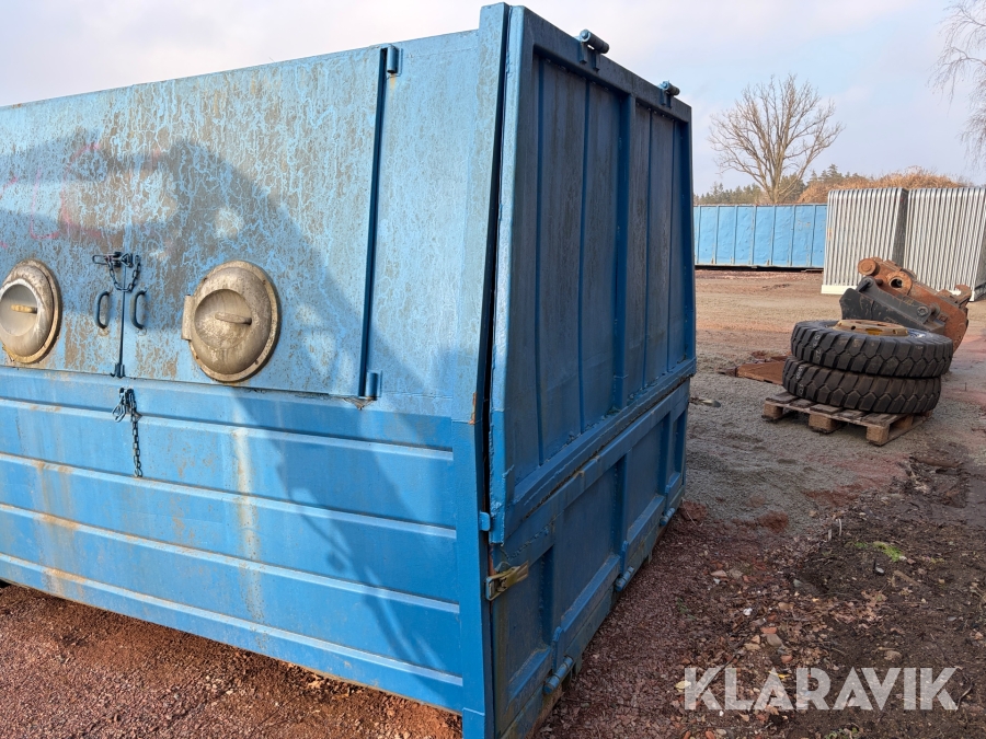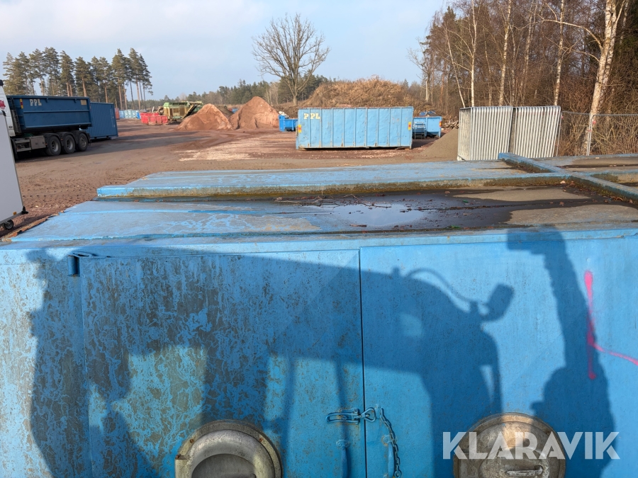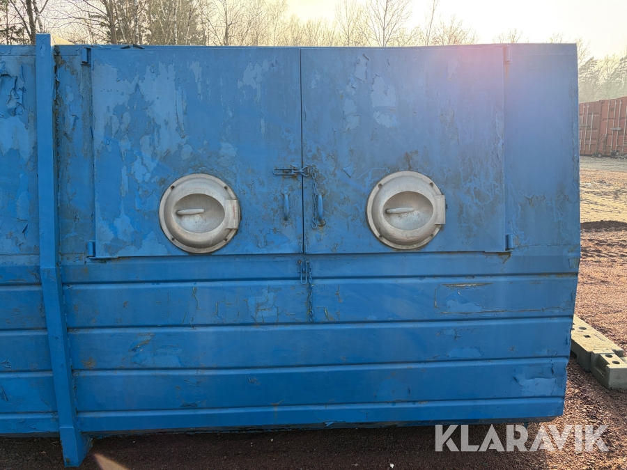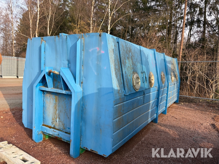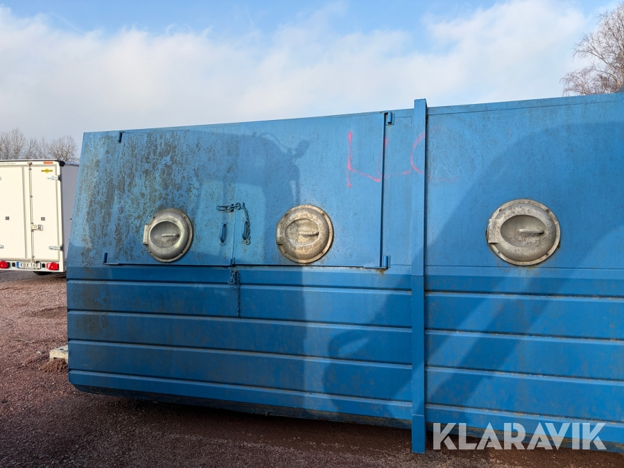 Lastväxlarflak med täckt container och sidoinkast