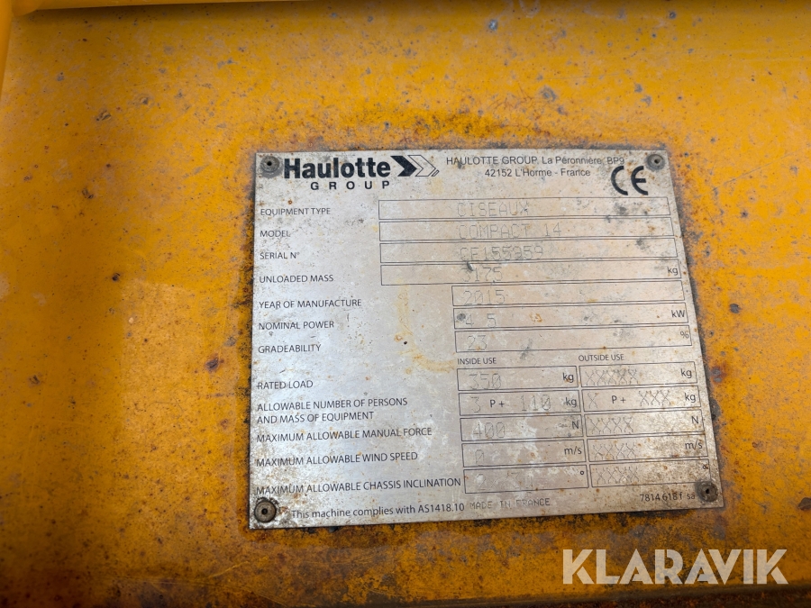 Saxlift 2st Haulotte Compact 14