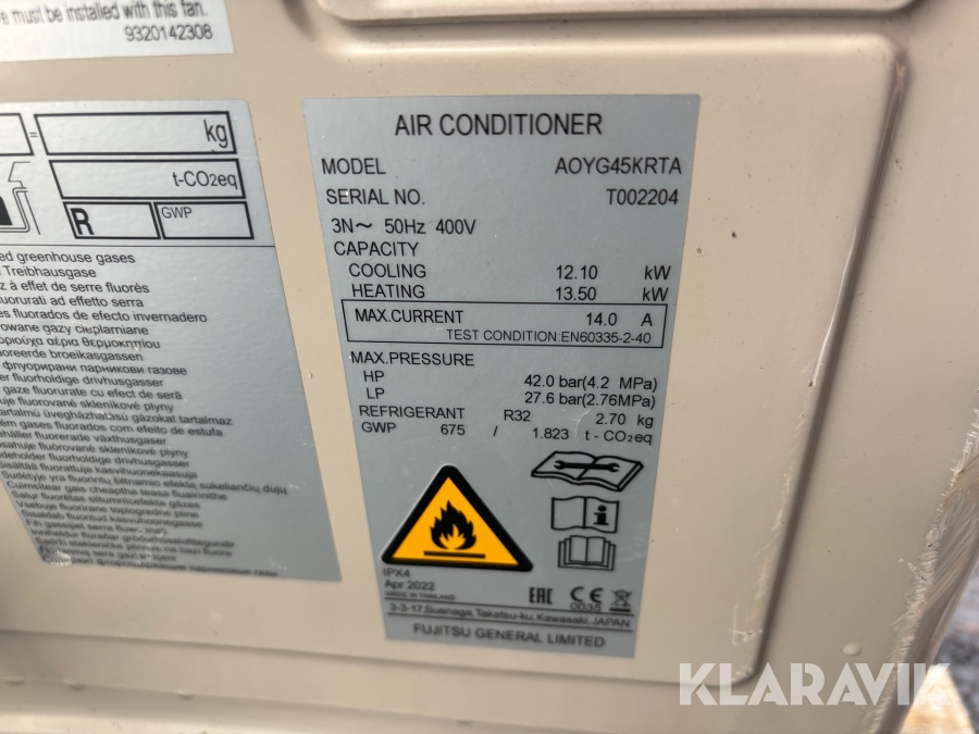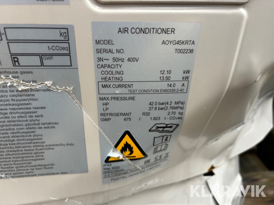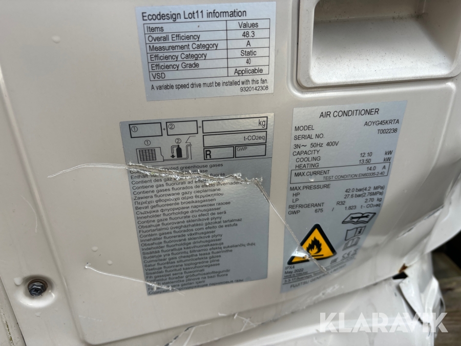 Komfortkyla Fujitsu AOYG45KRTA 2 st