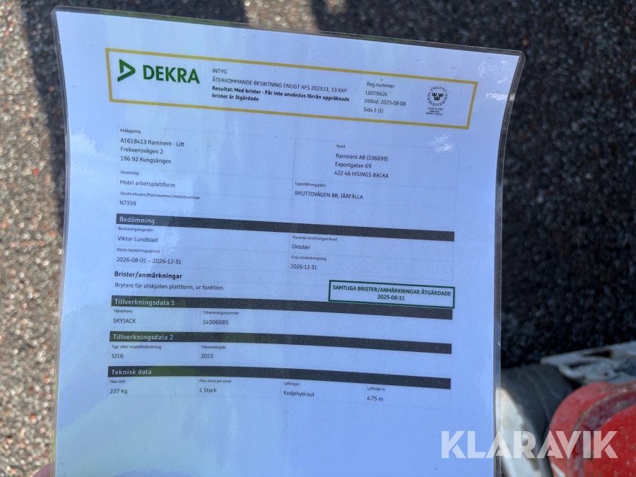 Du som köpare är skyldig att kontrollera objektet vid hämtning. Skiljer sig något avsevärt jämfört med informationen på klaravik.se? Kontakta då Klaravik innan du tar objektet från platsen. Läs fullständiga köpvillkor.