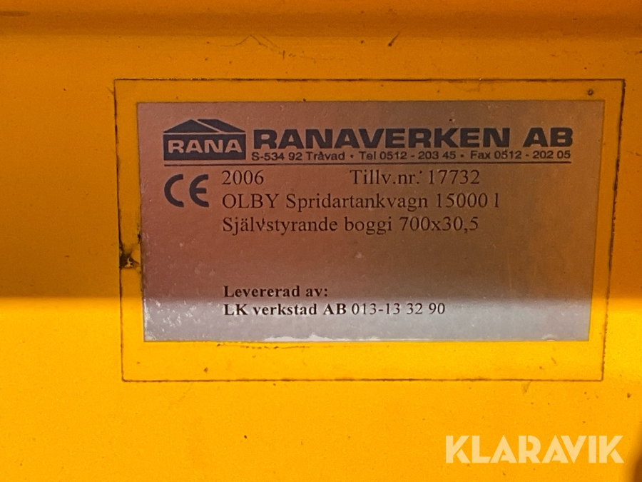 Spridartankvagn Olby 15000L 12meter ramp