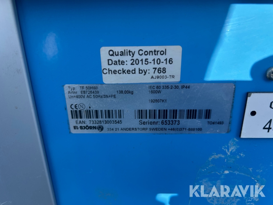 Boka frakt? Det finns ingen specifik information om frakt för just det här objektet, men om du skickar oss en förfrågan via vårt fraktformulär, så undersöker vi möjligheten. Paket, EU-pall eller större maskin? Klaravik har fraktavtal med Schenker och i de fall vi kan hjälpa till med frakt gäller det objekt som ryms i paket eller inom en EU-pall (upp till 120*80 cm och 990 kg). Det går att beställa frakt inom Sverige, dock inte till utlandet. Vid frakt på större maskiner rekommenderar vi gärna transportföretag som du kan kontakta.