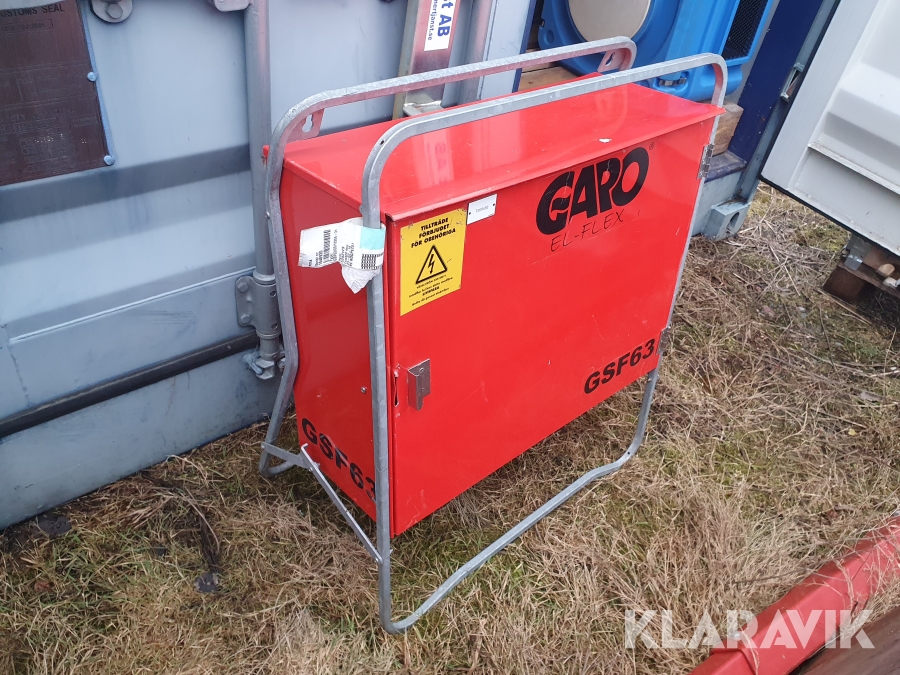 Undercentral 63A med fast inkoppling. I låsbart skåp med fällbart golvstativ.