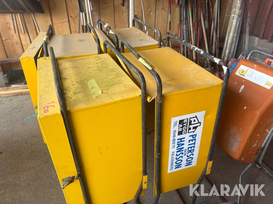 Boka frakt? Det finns ingen specifik information om frakt för just det här objektet, men om du skickar oss en förfrågan via vårt fraktformulär, så undersöker vi möjligheten. Paket, EU-pall eller större maskin? Klaravik har fraktavtal med Schenker och i de fall vi kan hjälpa till med frakt gäller det objekt som ryms i paket eller inom en EU-pall (upp till 120*80 cm och 990 kg). Det går att beställa frakt inom Sverige, dock inte till utlandet. Vid frakt på större maskiner rekommenderar vi gärna transportföretag som du kan kontakta.