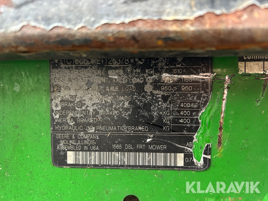 Redskapsbärare John Deere 1565 frontklippare diesel 36HK 4WD