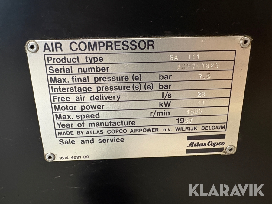 Skruvkompressor Atlas Copco GA 111