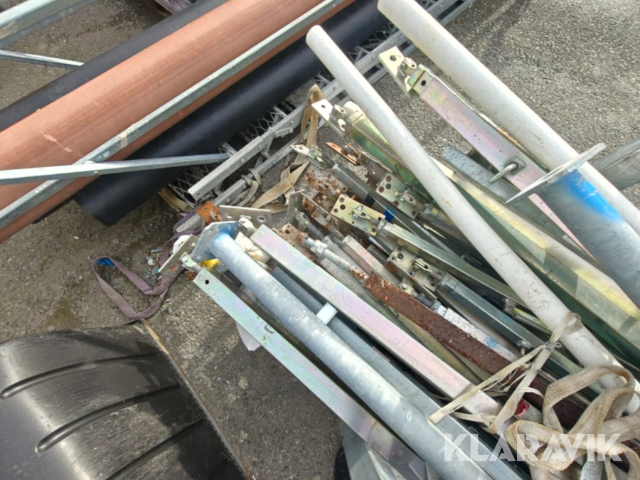 Blandade stålprofiler, ställningsdelar och tillbehör i transportställ