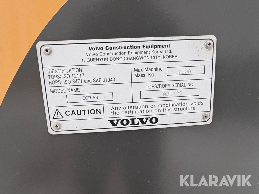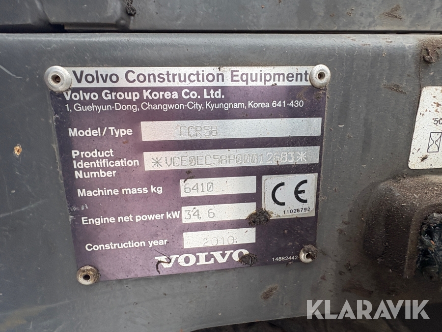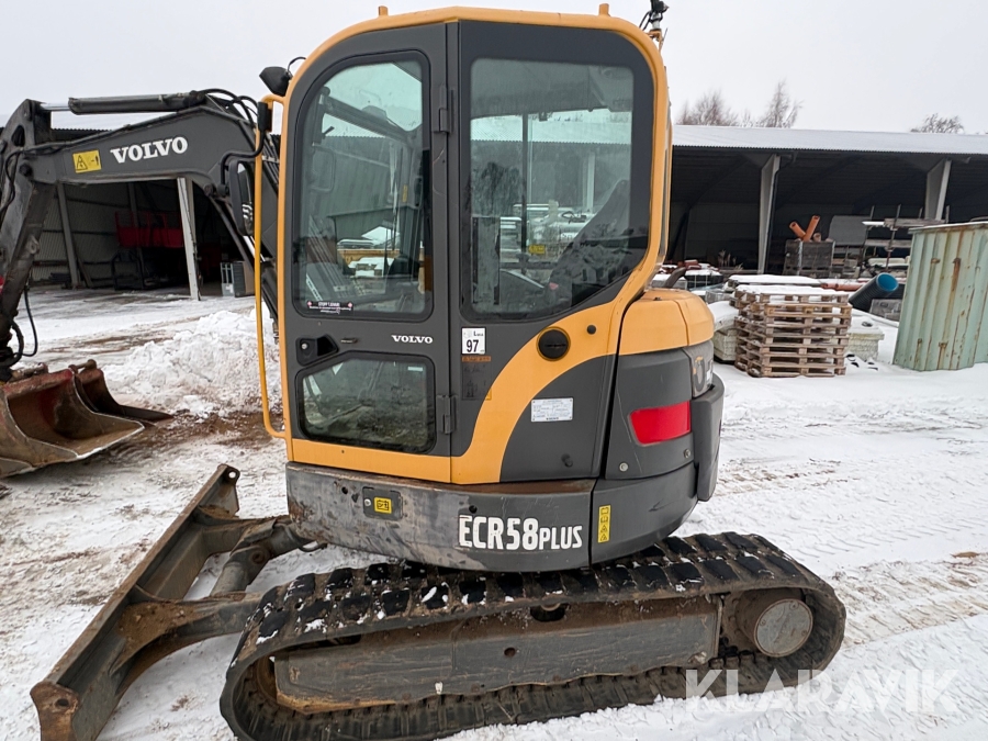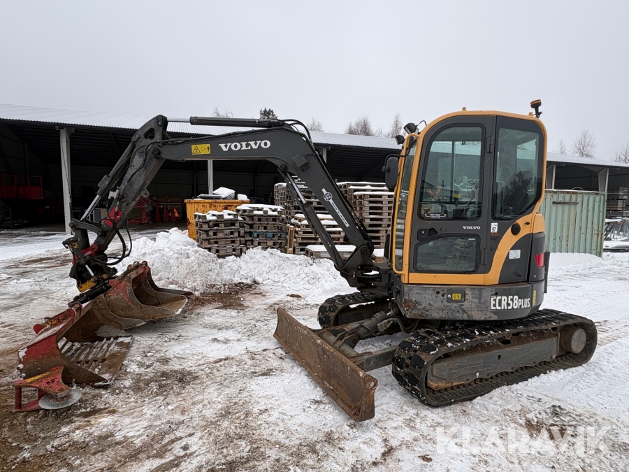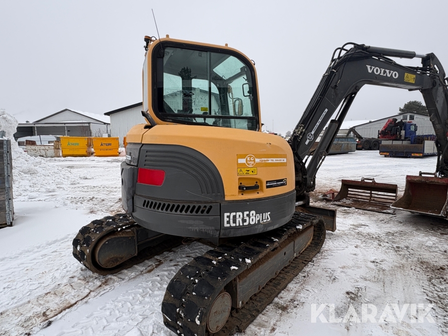 Grävmaskin Volvo ECR58Plus med tiltrotator, skopor och redskap