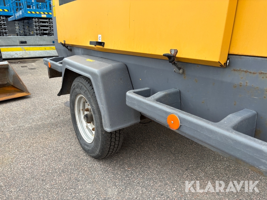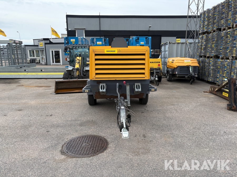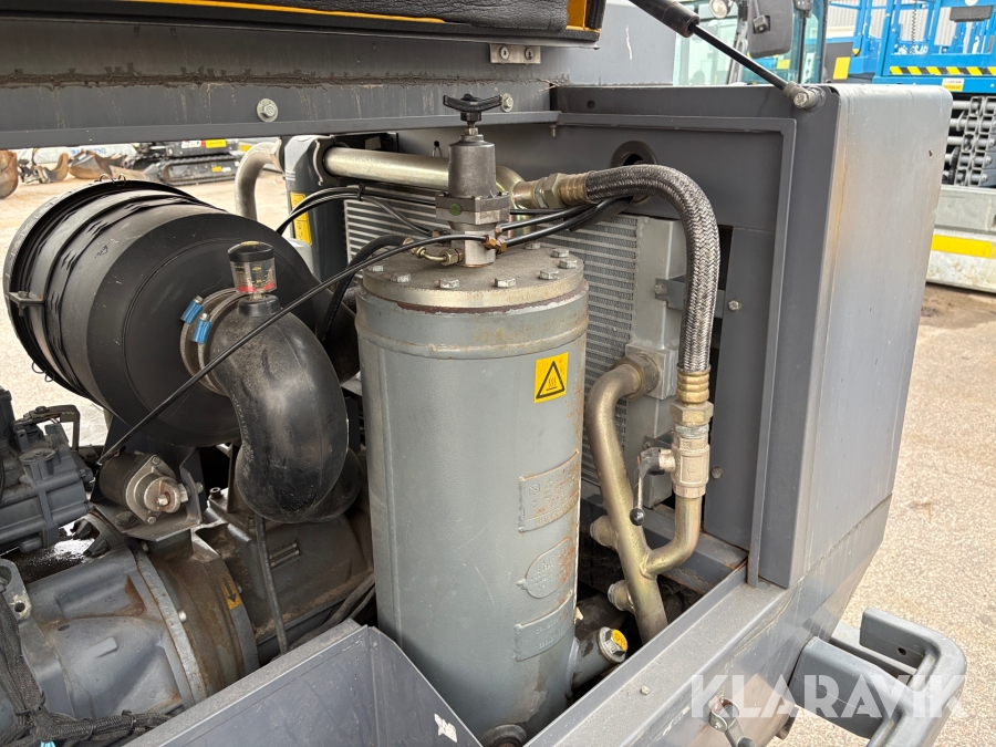 Transportabel, ljuddämpad kompressor för stora luftbehov. Extra utrustad med efterkylare och vattenavskiljare och mycket passande för blästringsarbeten. Manuellt justerbart tryck mellan 7-12 bar.