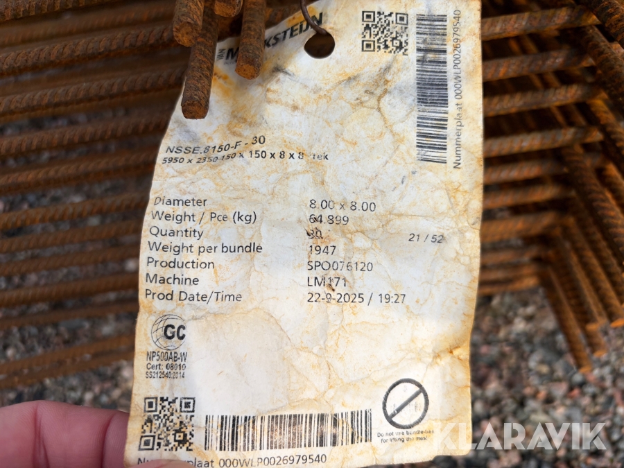 Armeringmattor Merksteijn 5950 x 2350 x 8 x 8 mm ca 35 st