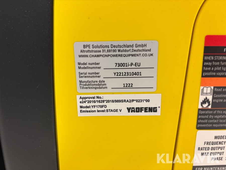 • Serie/chassinummer framgår