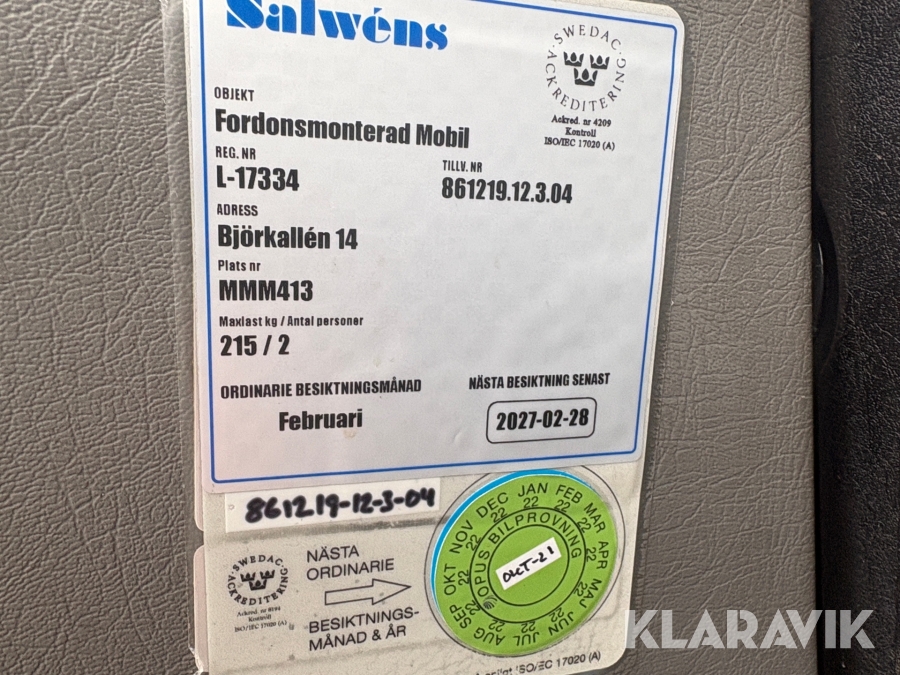 Du som köpare är skyldig att kontrollera objektet vid hämtning. Skiljer sig något avsevärt jämfört med informationen på klaravik.se? Kontakta då Klaravik innan du tar objektet från platsen. Läs fullständiga köpvillkor.