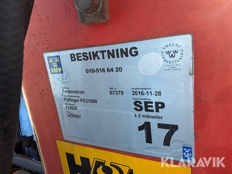 Lastväxlarflak Rackstad kran Palfinger PK21000 med Gripskopa
