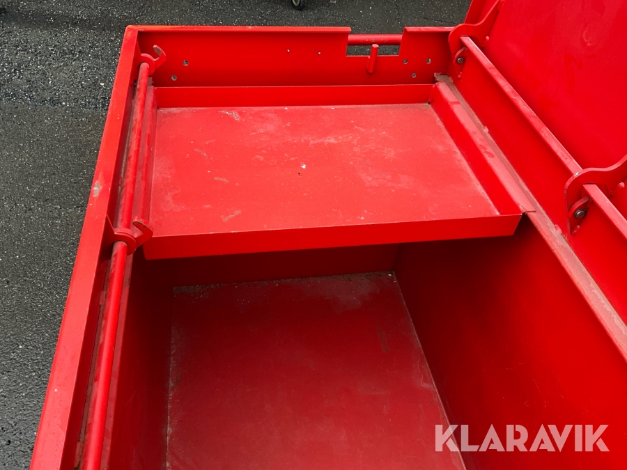 Verktygskistans två bastanta handtag och fyra länkhjul gör den enkel att manövrera.