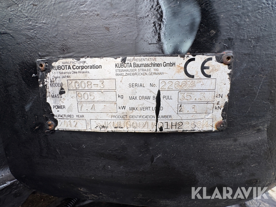 Grävmaskin Kubota K008-3 Med maskinsläp och skopor