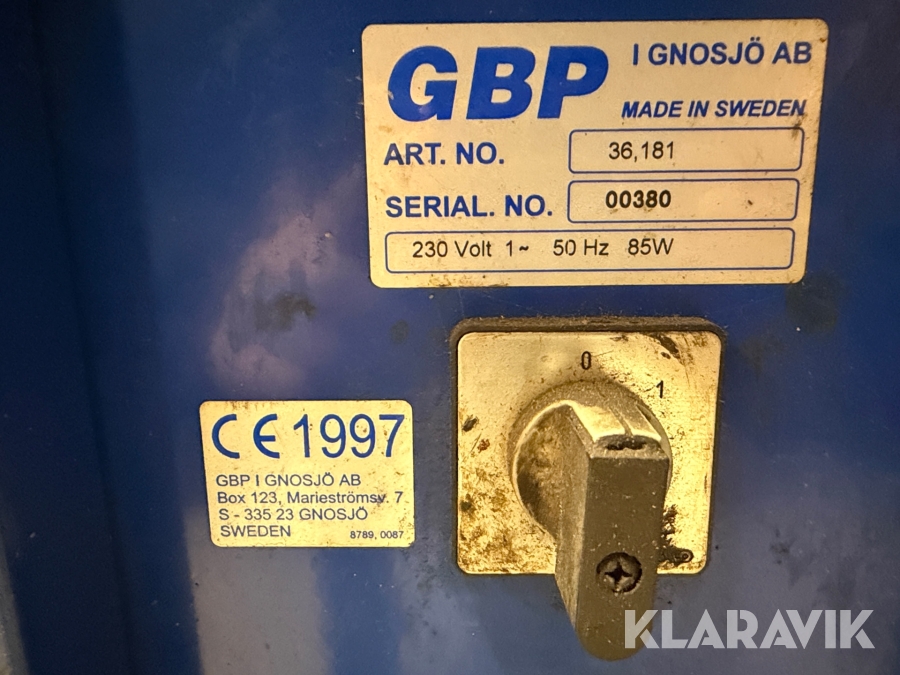 Boka frakt? Det finns ingen specifik information om frakt för just det här objektet, men om du skickar oss en förfrågan via vårt fraktformulär, så undersöker vi möjligheten. Paket, EU-pall eller större maskin? Klaravik har fraktavtal med Schenker och i de fall vi kan hjälpa till med frakt gäller det objekt som ryms i paket eller inom en EU-pall (upp till 120*80 cm och 990 kg). Det går att beställa frakt inom Sverige, dock inte till utlandet. Vid frakt på större maskiner rekommenderar vi gärna transportföretag som du kan kontakta.