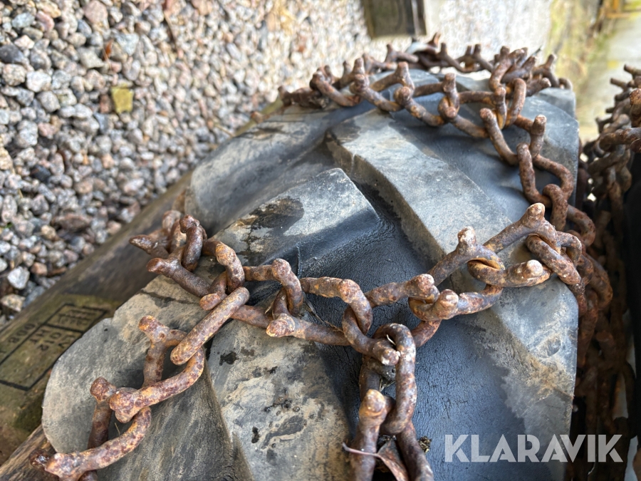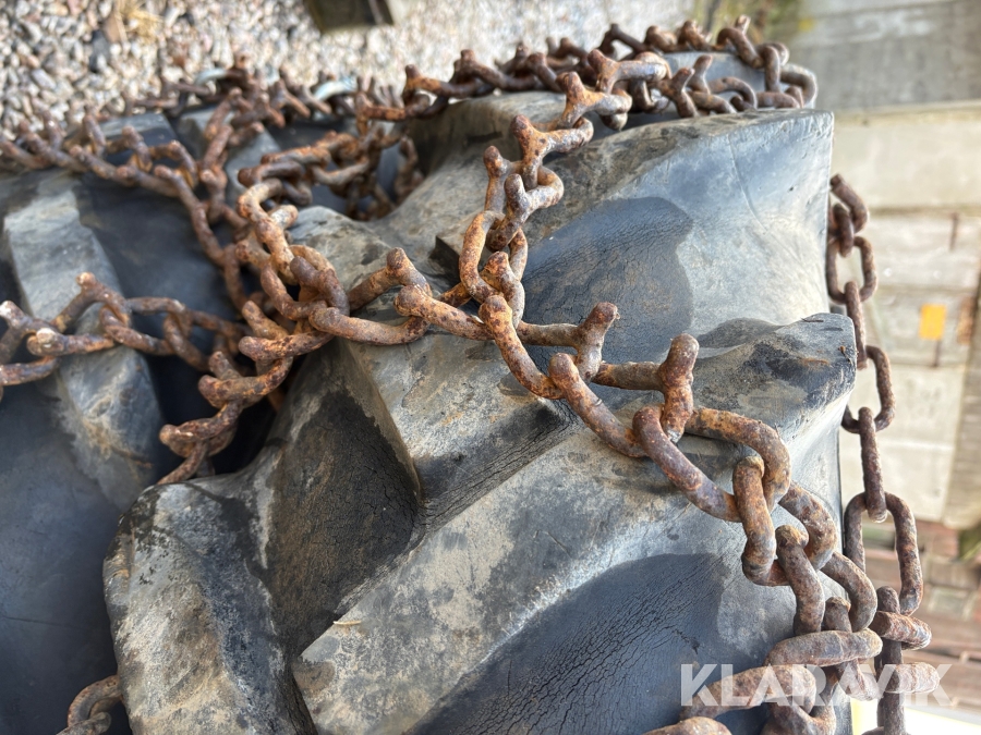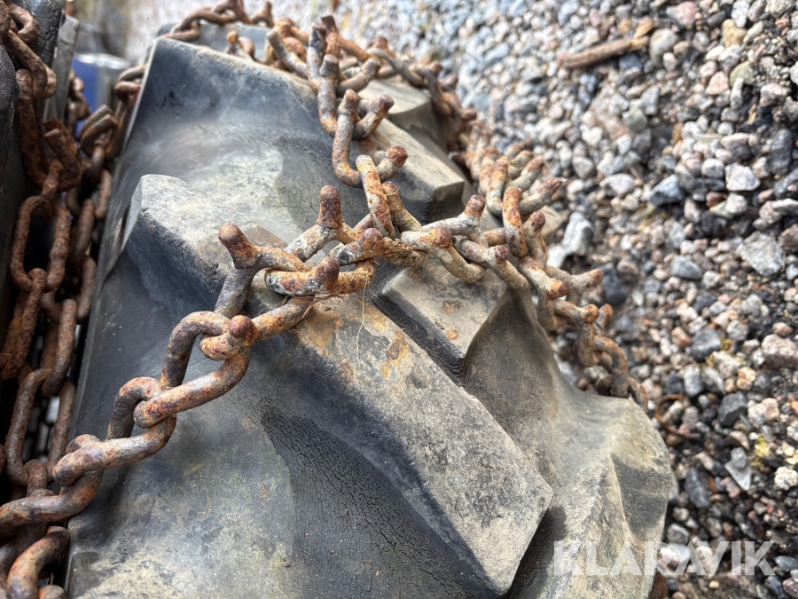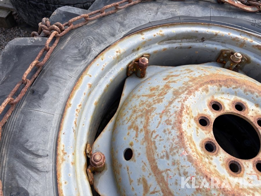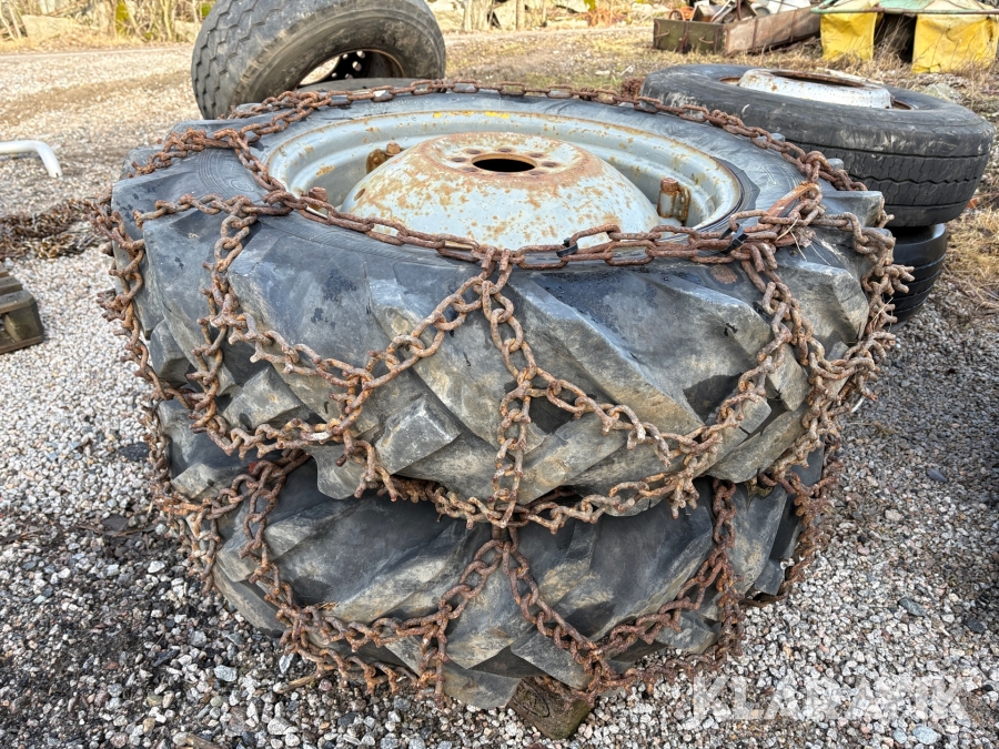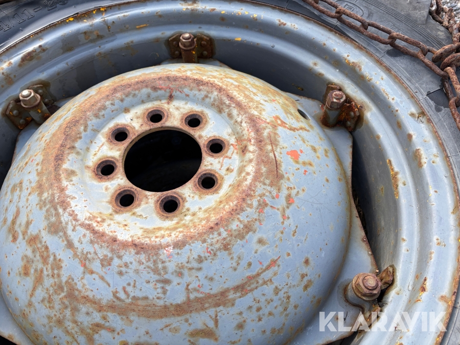 Traktordäck med fälg & kedjor, 2st 12.4/11-28 2 st