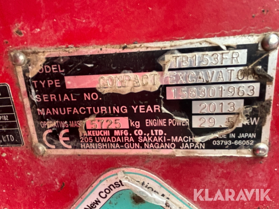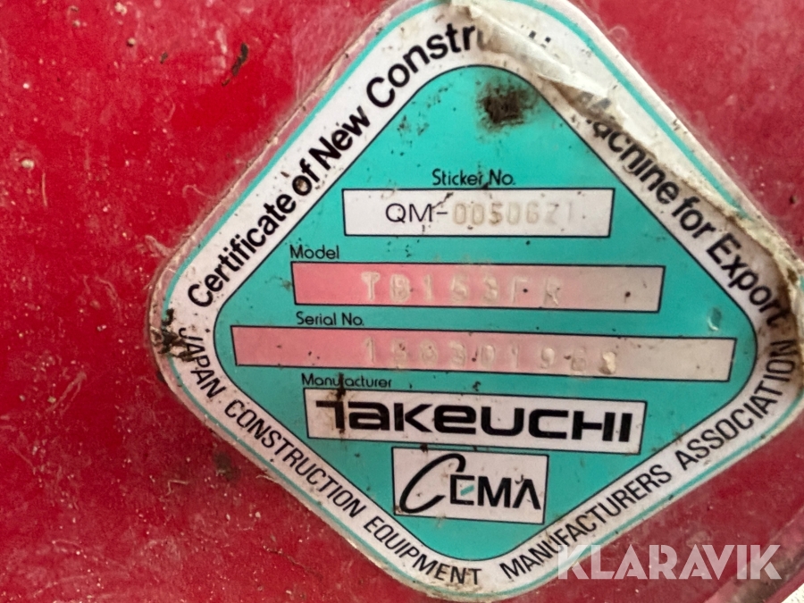 Grävmaskin Takeuchi TB153FR med redskap