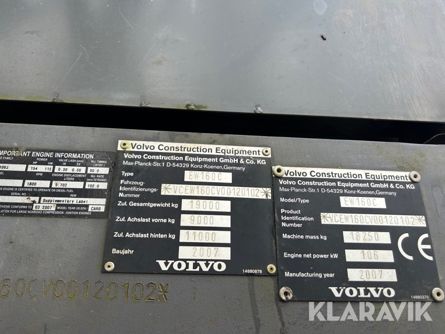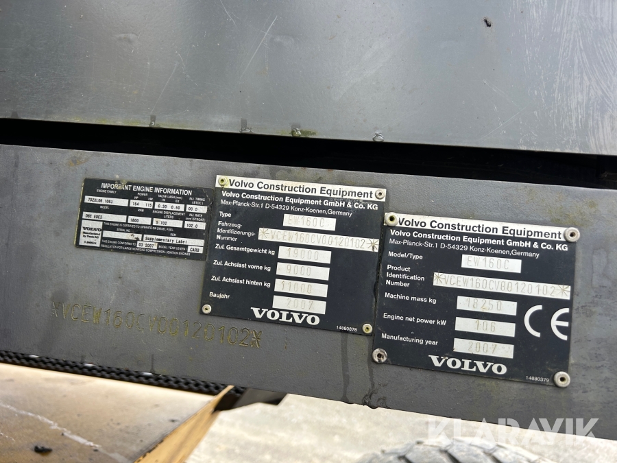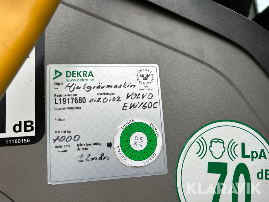Grävmaskin Volvo EW160C med skopa & rotator B20