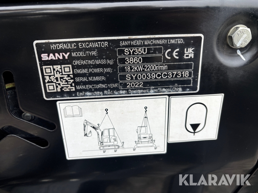 Grävmaskin Sany SY35U - Med tiltrotator och 3 skopor