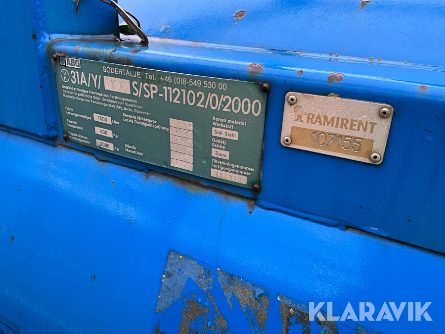 ADR HVO100tank med elektriskpump. Gaffeltunnlar från långsidan samt möjlighet till kranlyft.