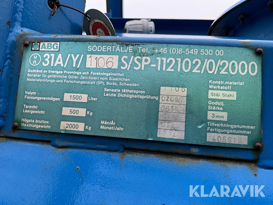 - Volym: 1500 l