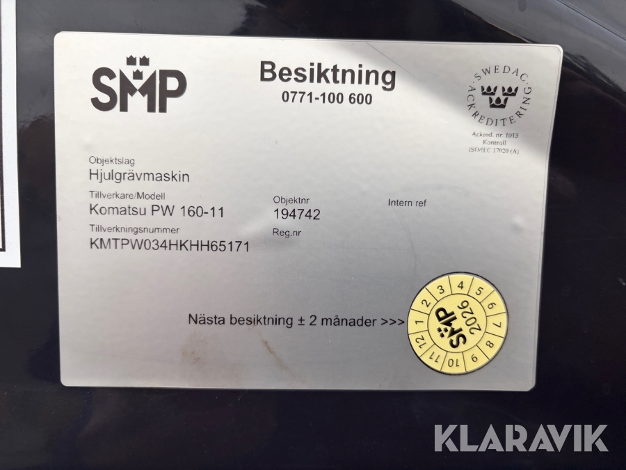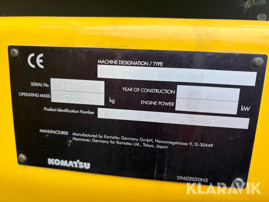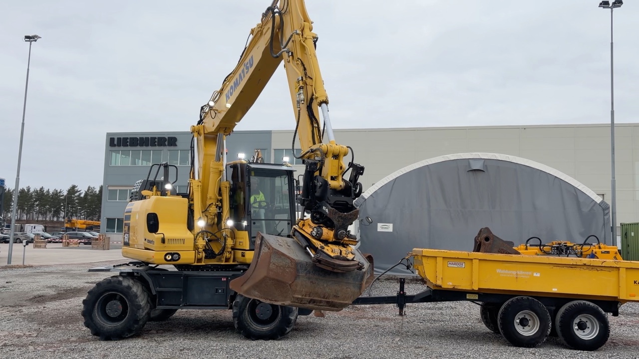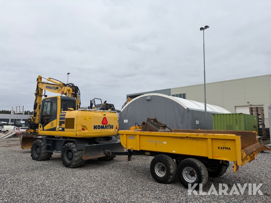 Hjulgrävare Komatsu PW160-11 med tippvagn och redskap