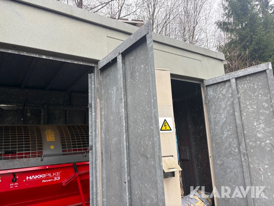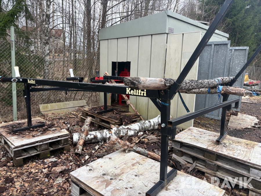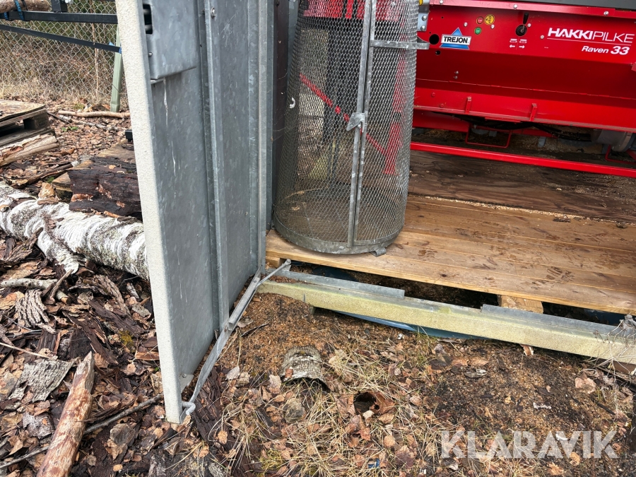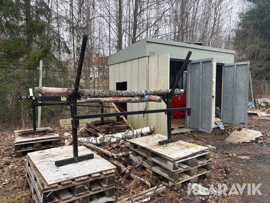 Vedmaskin Hakkipilke Raven 33 komplett med tillhörande skjul och virke
