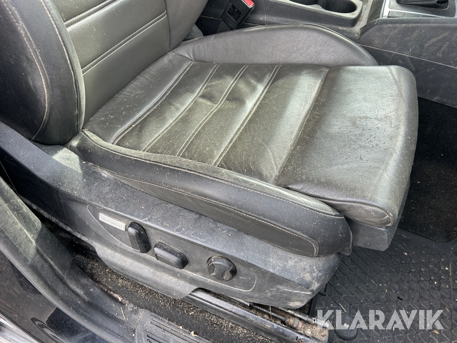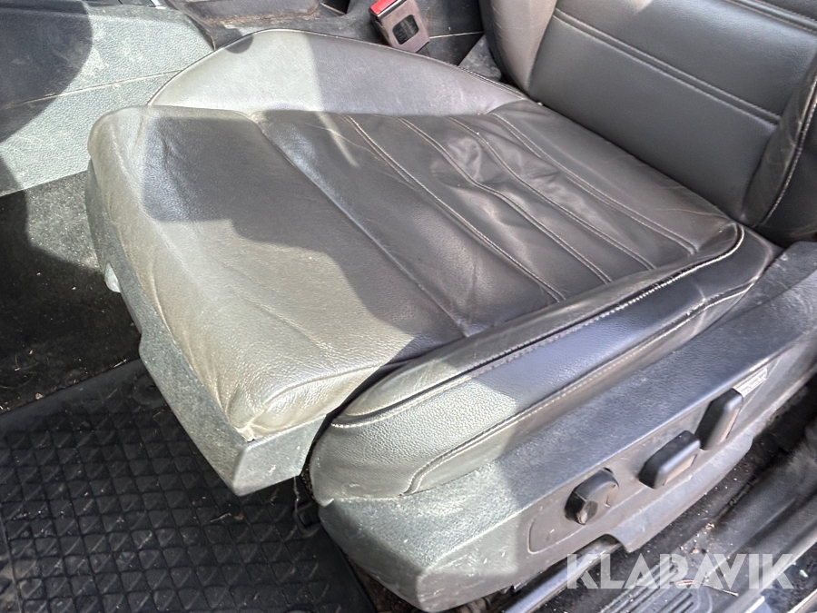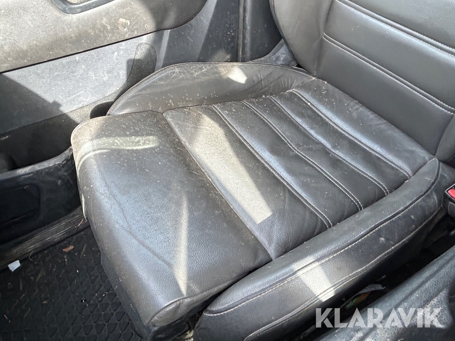 Sliten förarstol med hål i.