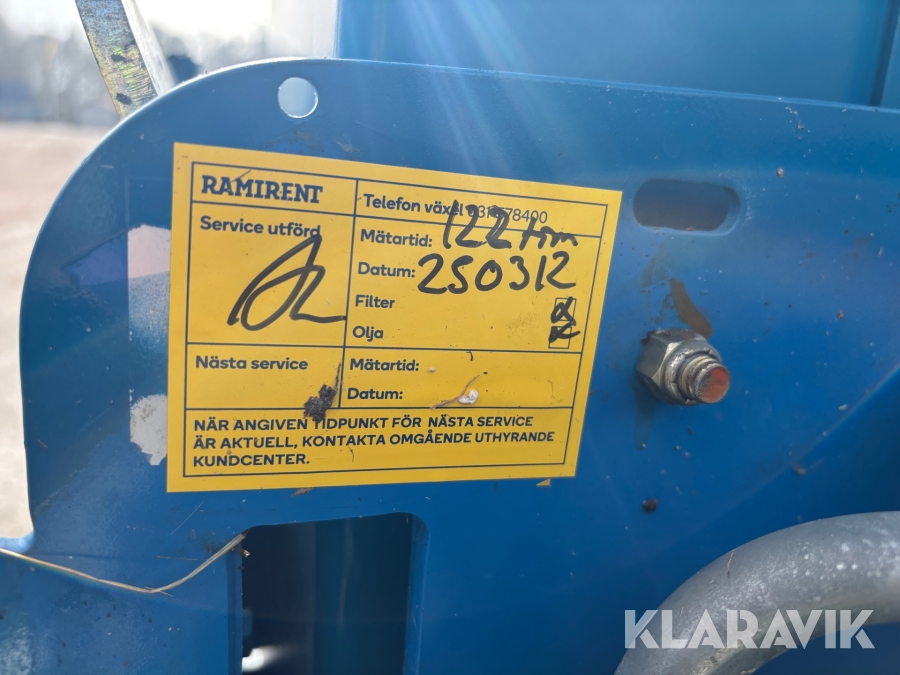 Läs om metodikenPga platsbrist är det viktigt att du som köpare hämtar inom 12 dagar från auktionsavslut. Vid frågor om frakt kontakta trade@ramirent.se.