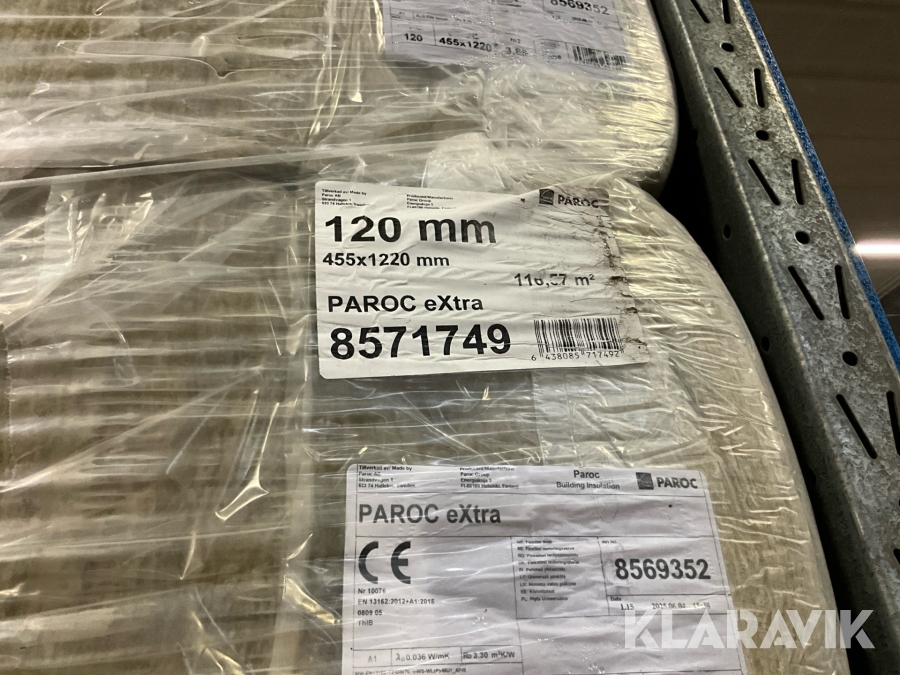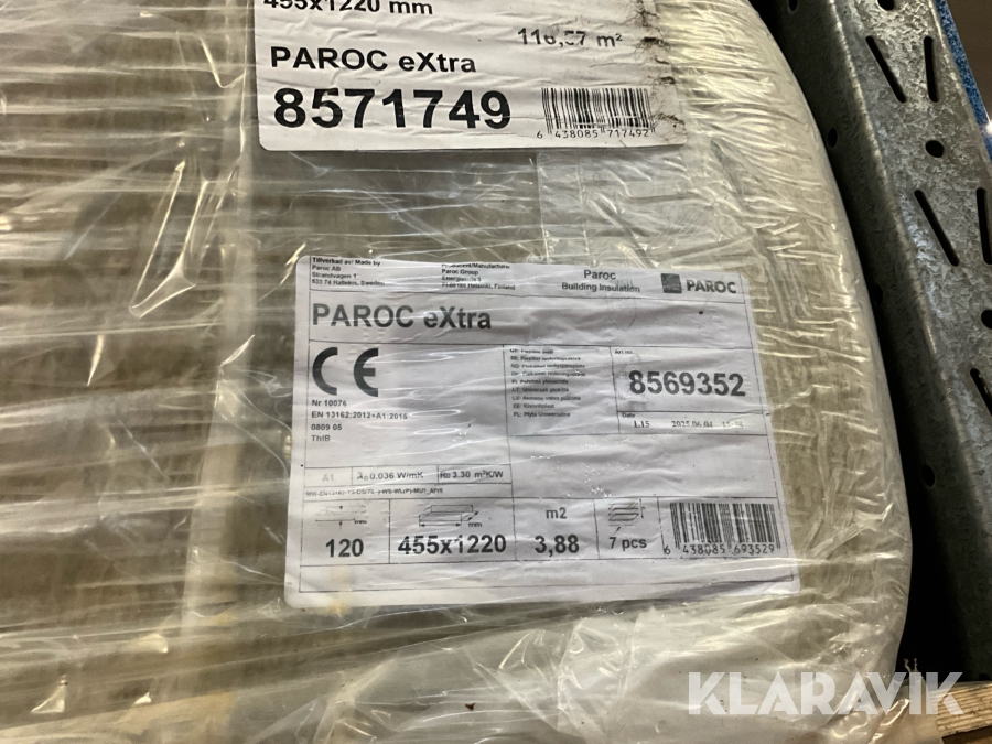 Isolering/stålregelskiva Paroc Extra C450 120mm 455x1220 299 m2