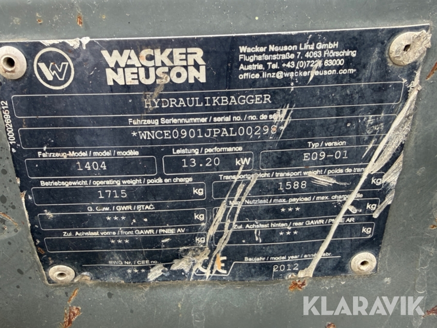 Grävmaskin Wacker Neuson 1404 med redskap
