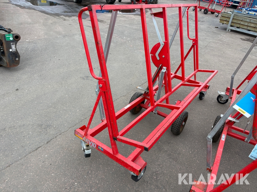 Skivvagnens funktion är att kunna förflytta gipsmaterial och skivor på ett enkelt och smidigt sätt från gipsbockar till monteringsplatsen. Tack vare dess smarta konstruktion kan du även nyttja skivvagnen för att skära till och anpassa ditt gipsmaterial direkt på plats, innan det ska vidare för montering.
