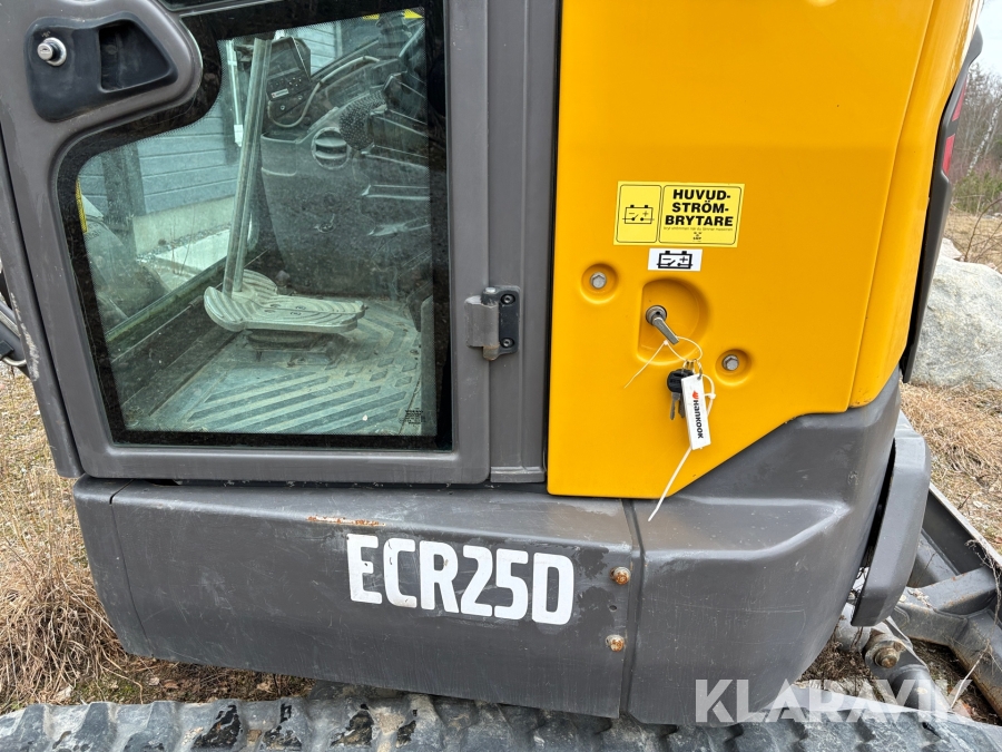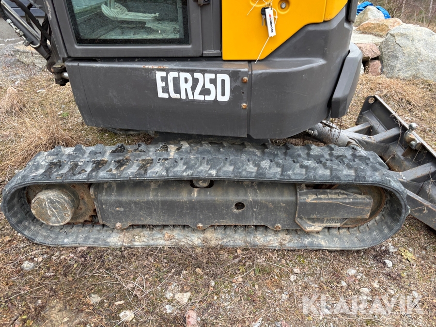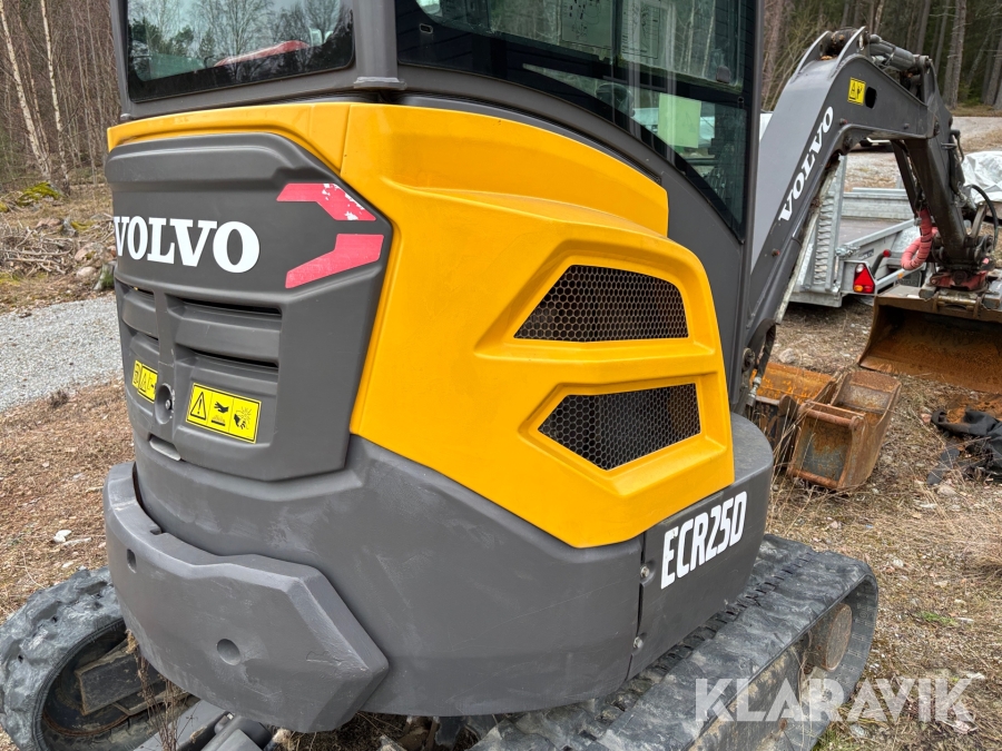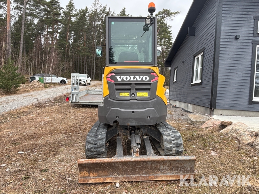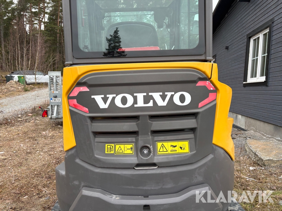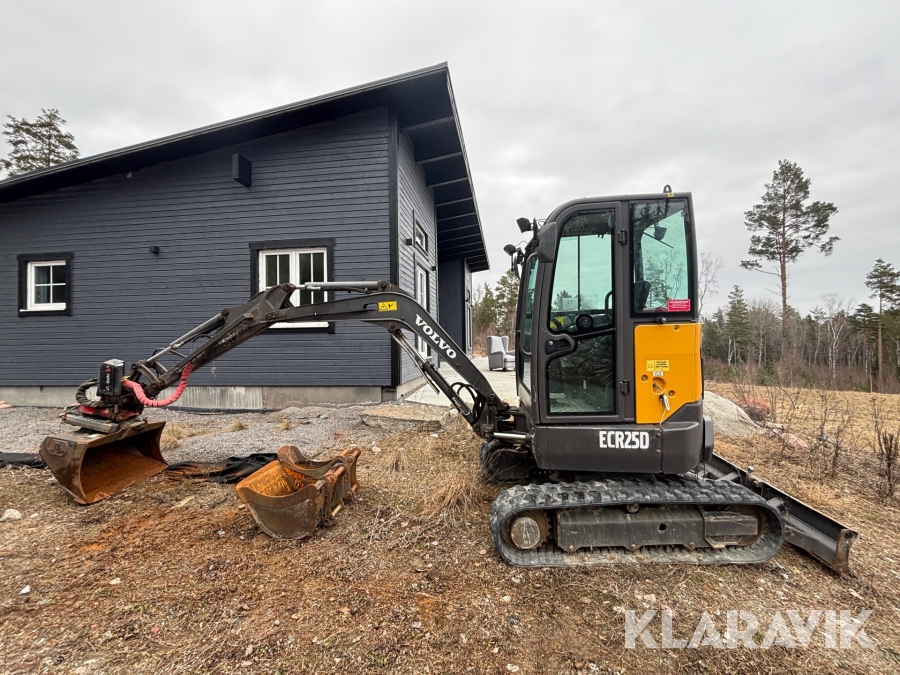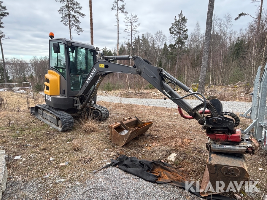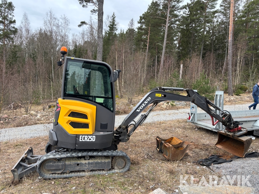 Minigrävare Volvo ECR25D med maskinsläp, tiltrotator och redskap