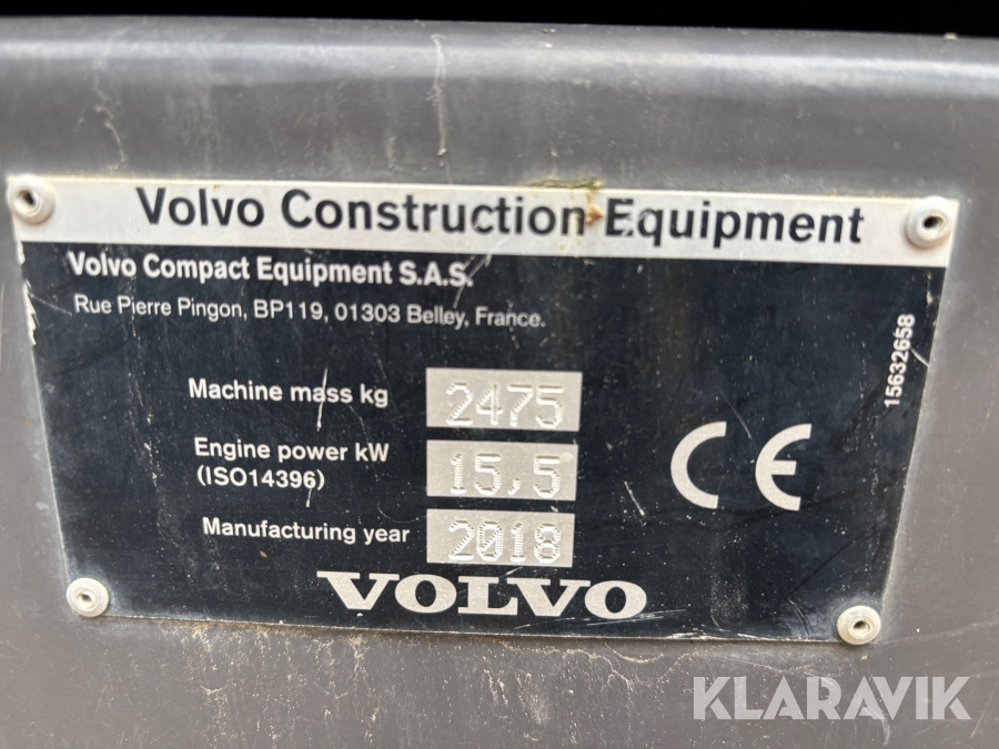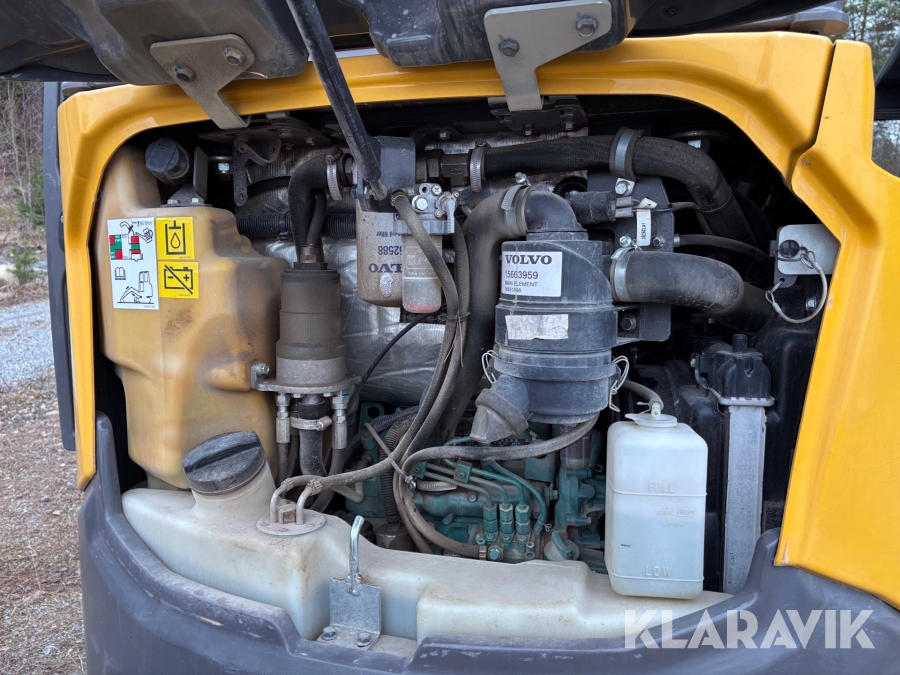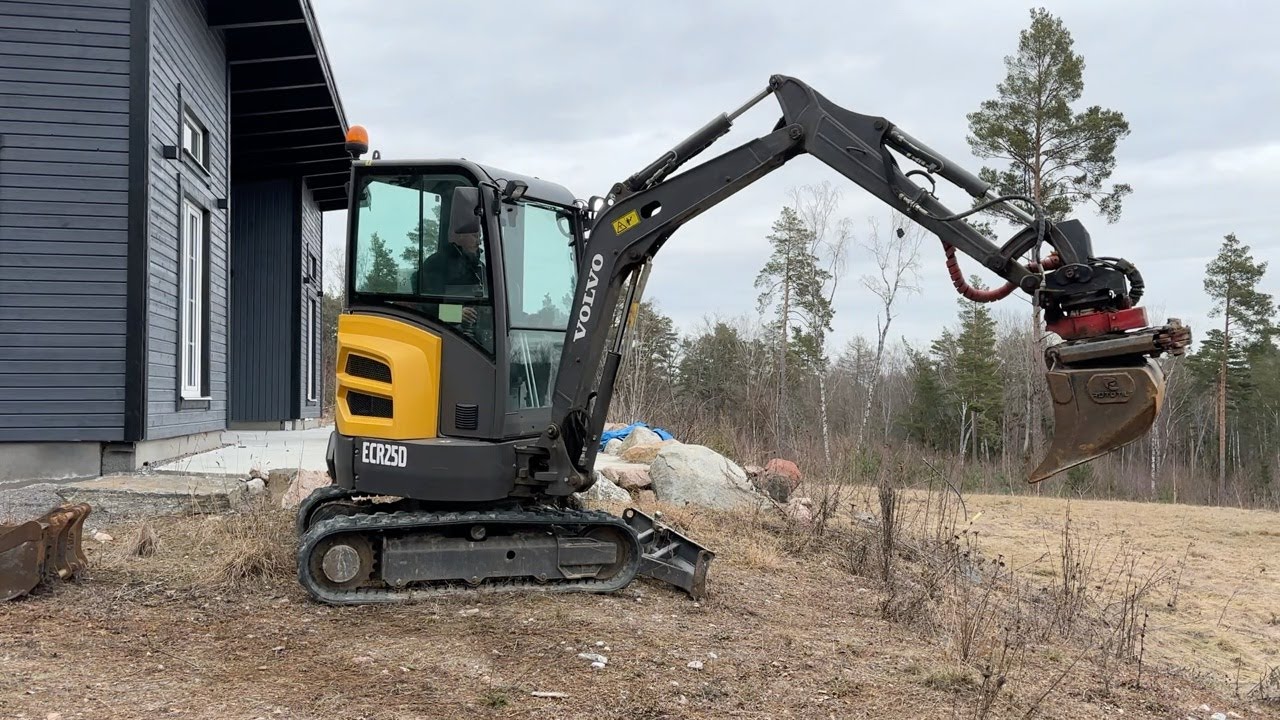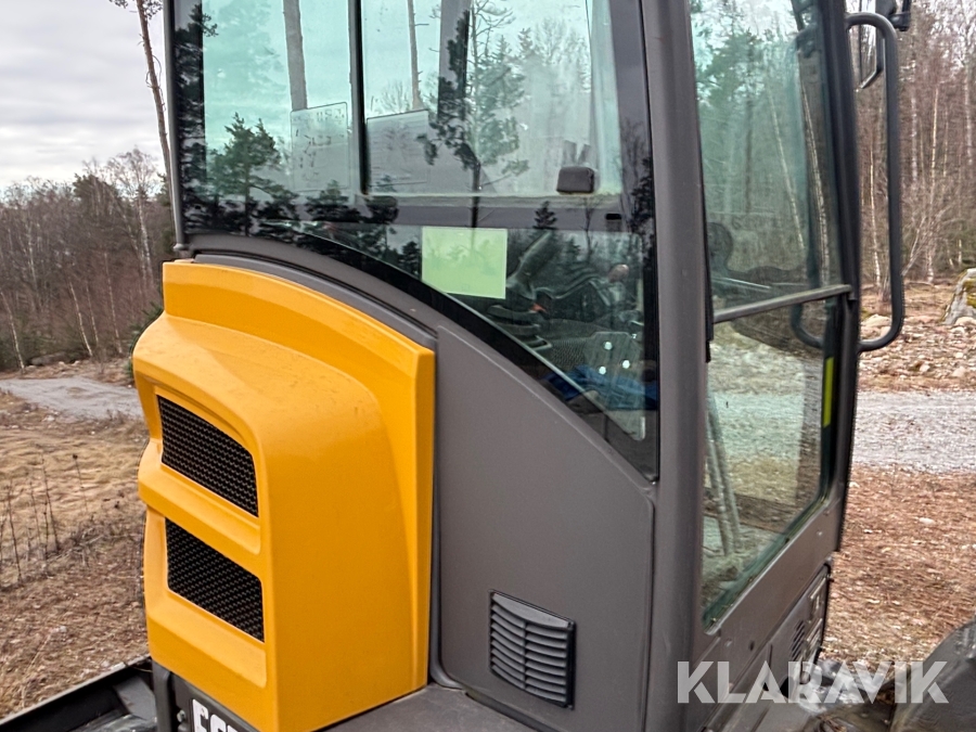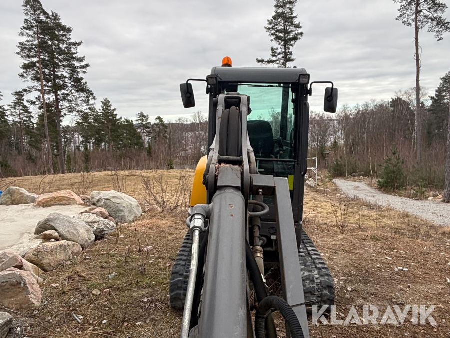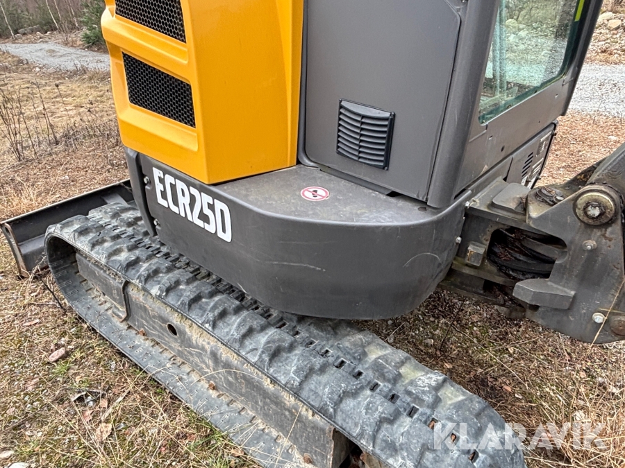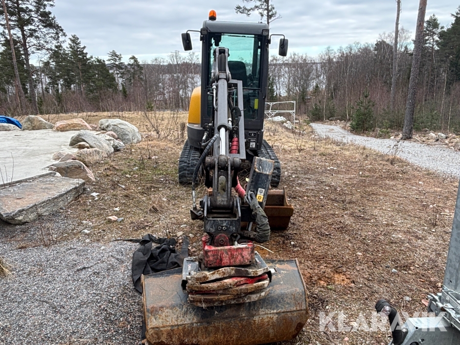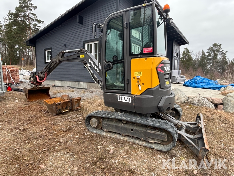 Minigrävare Volvo ECR25D med maskinsläp, tiltrotator och redskap